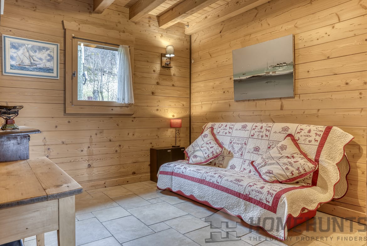 The chalet has three elegant bedrooms, as well as an upstairs sitting area, ideal for a relaxation area or office.