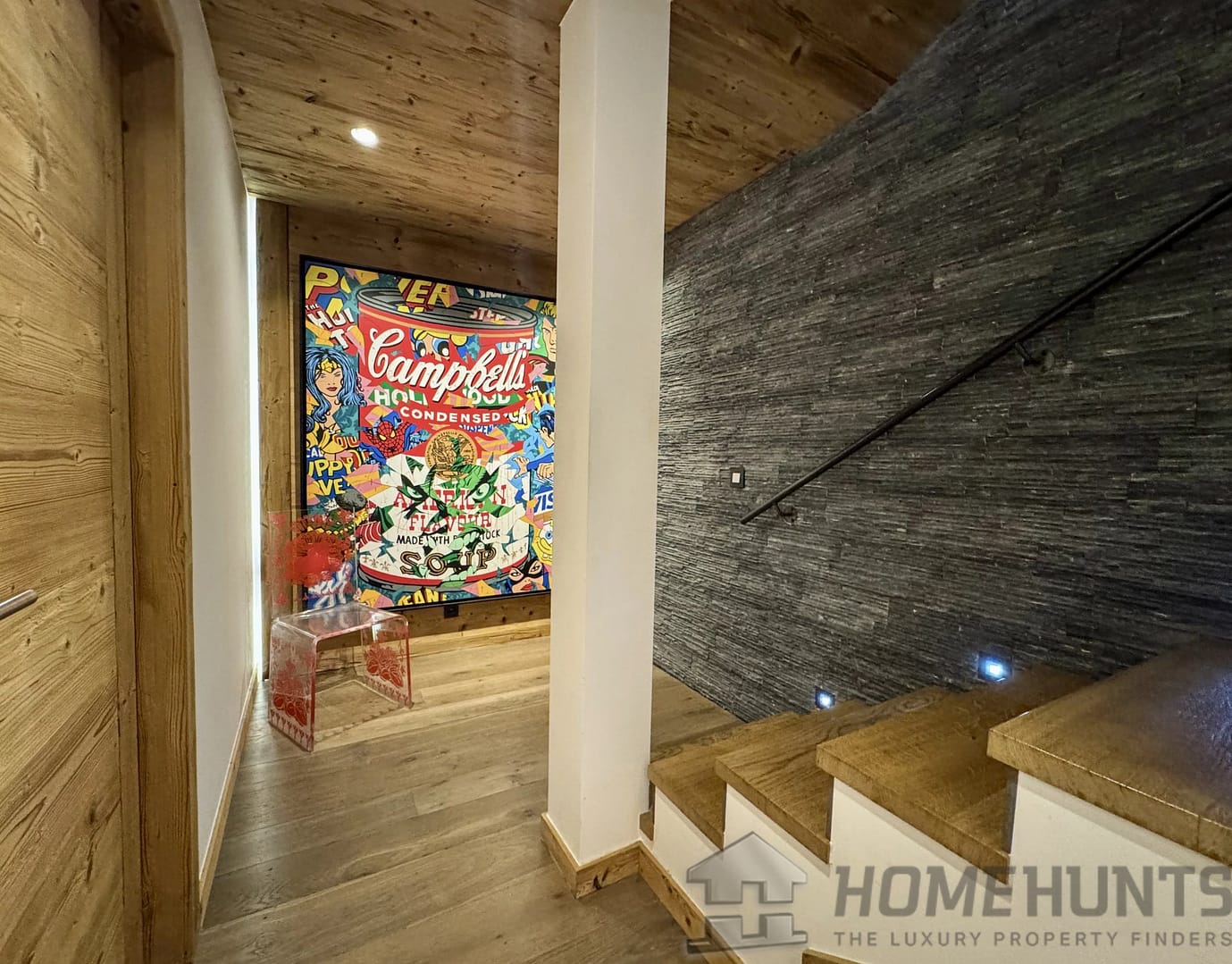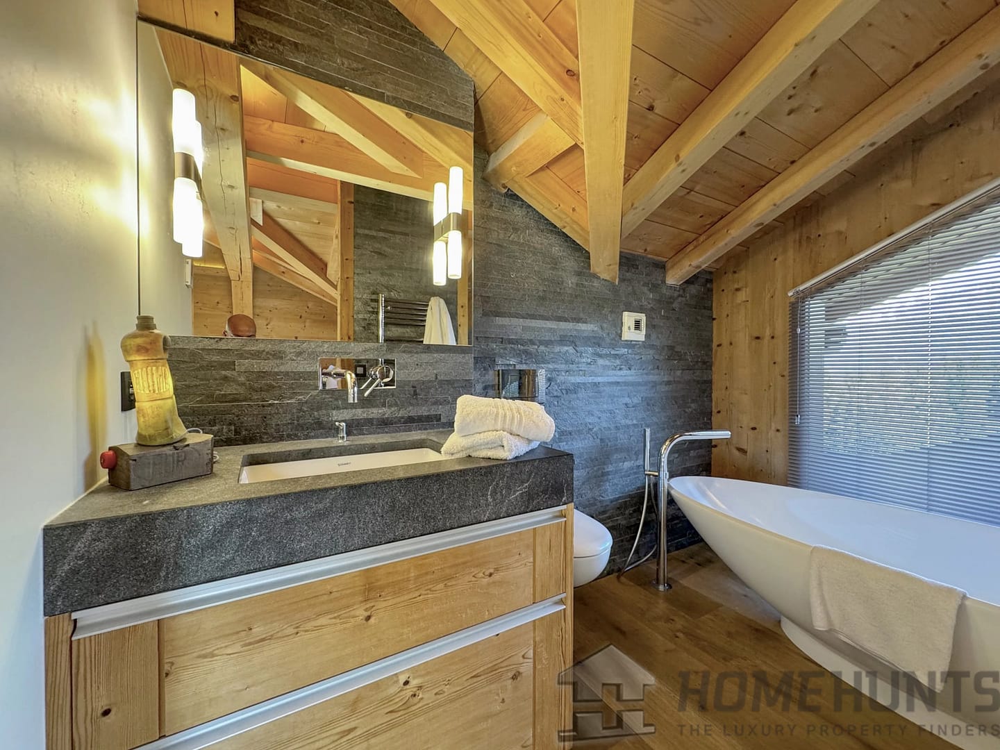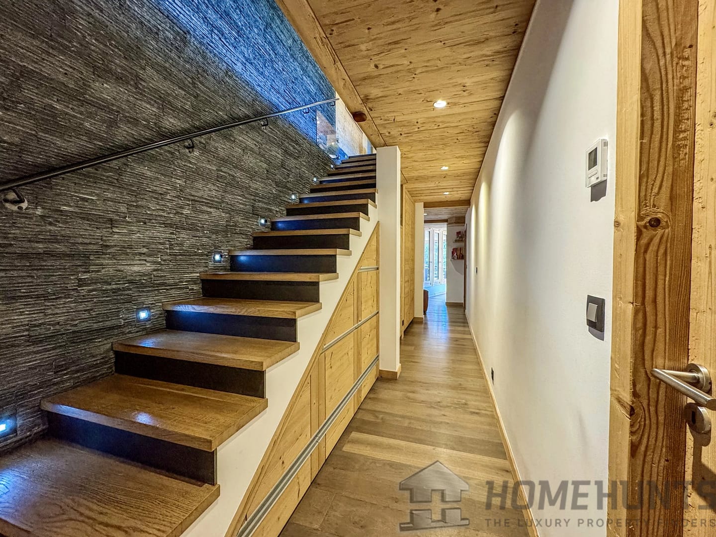 Outside, numerous terraces capture the sunlight and showcase the breathtaking alpine scenery, while a garage and additional parking spaces ensure convenience and ease of access. Every detail reflects high-quality craftsmanship and premium finishes, creating a chalet that is both sophisticated and inviting.