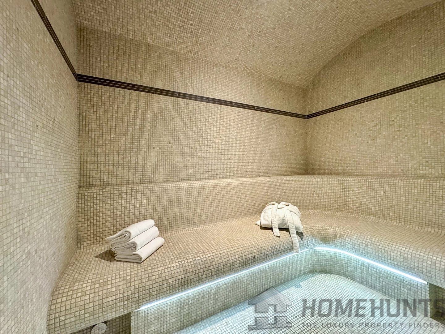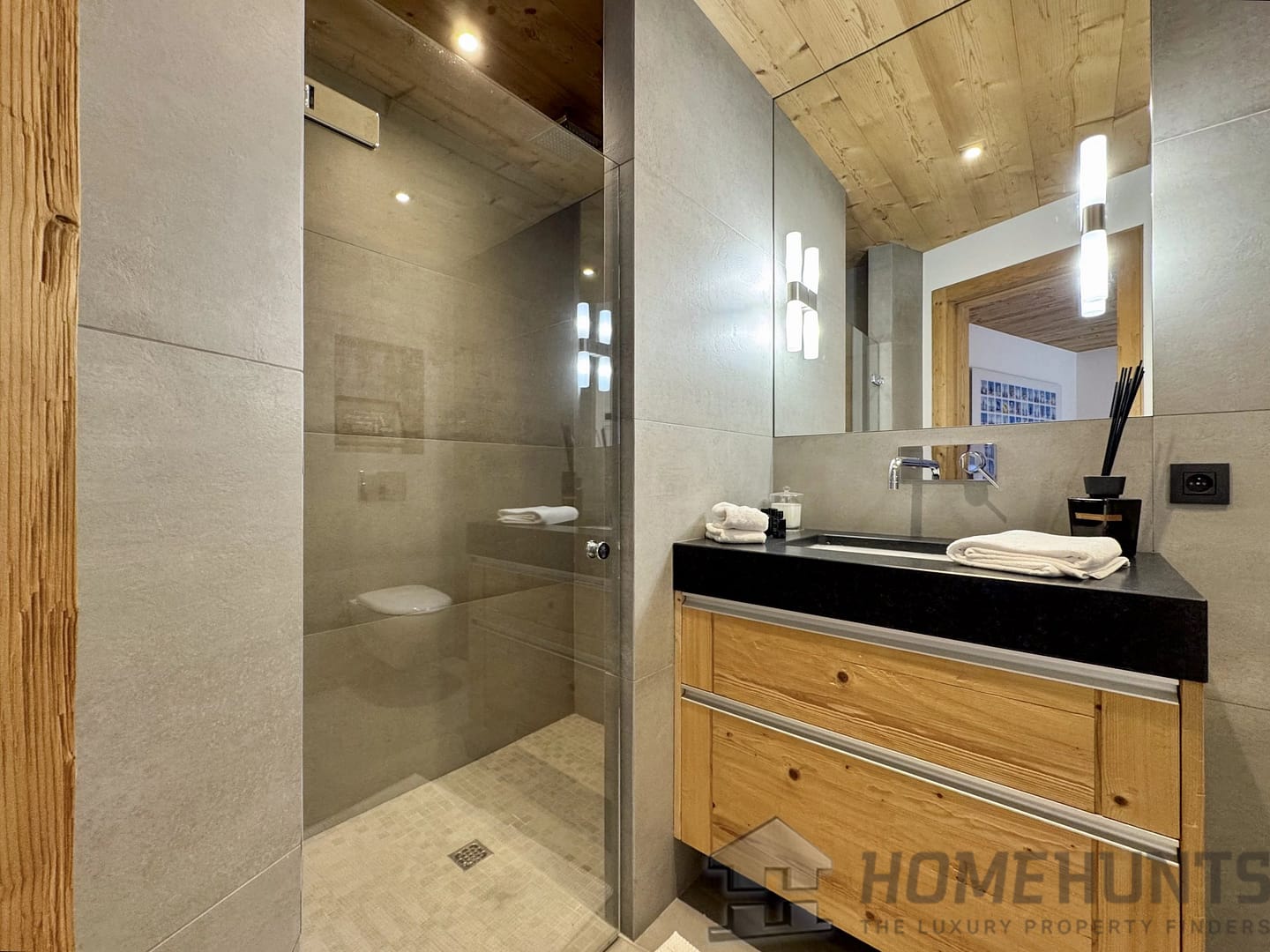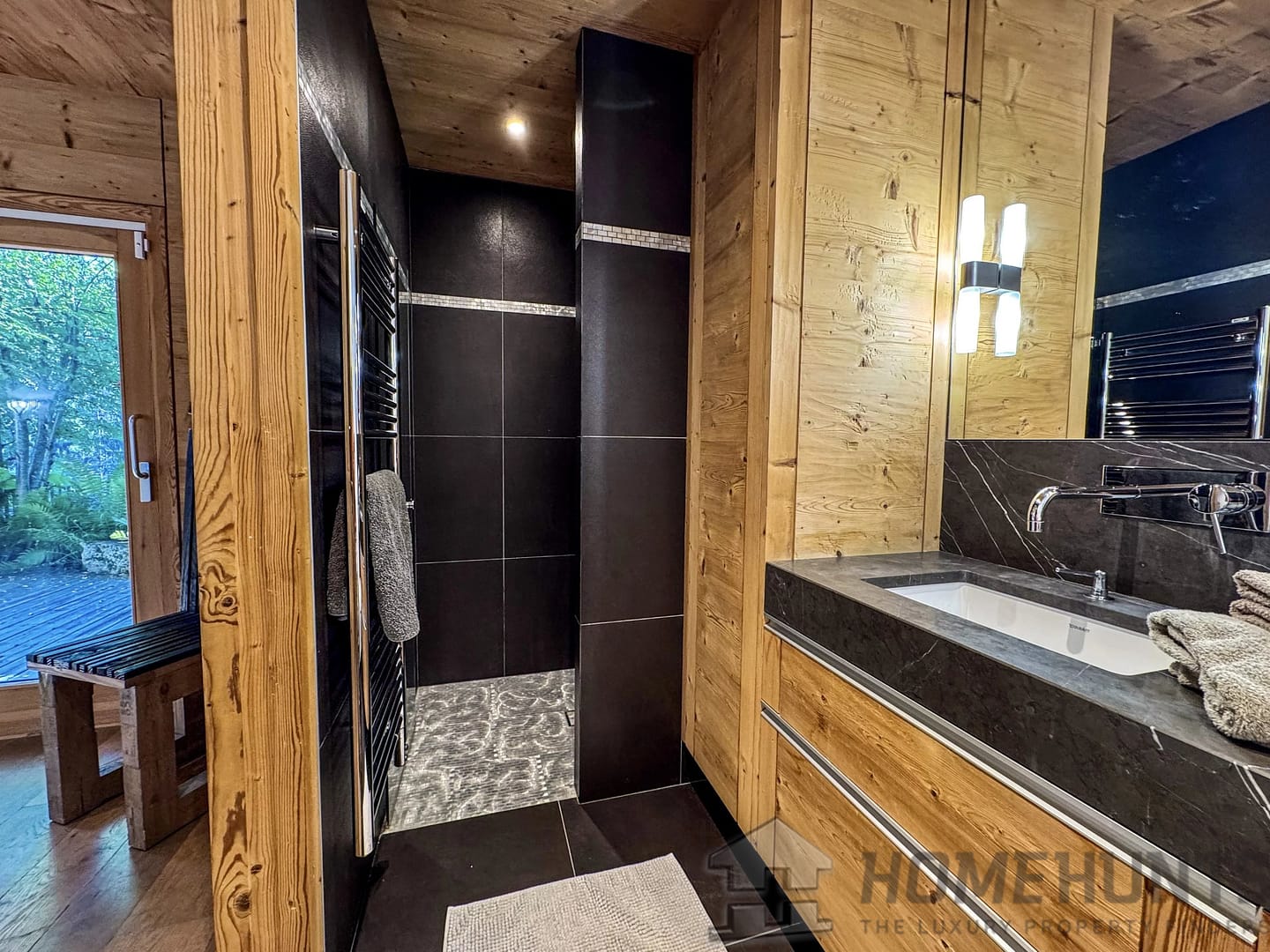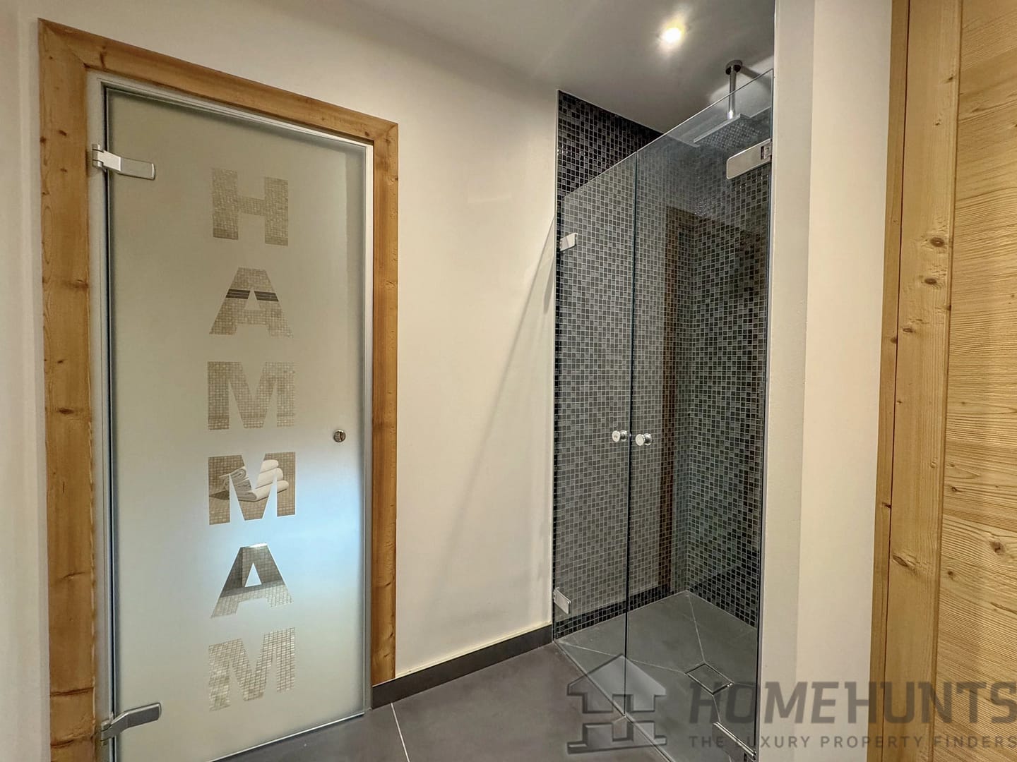 Accommodation includes five elegant bedrooms, three modern shower rooms, and a luxurious bathroom, providing privacy and comfort for family and guests alike. A dedicated wellness area with hammam and shower offers a perfect retreat after a day in the mountains.