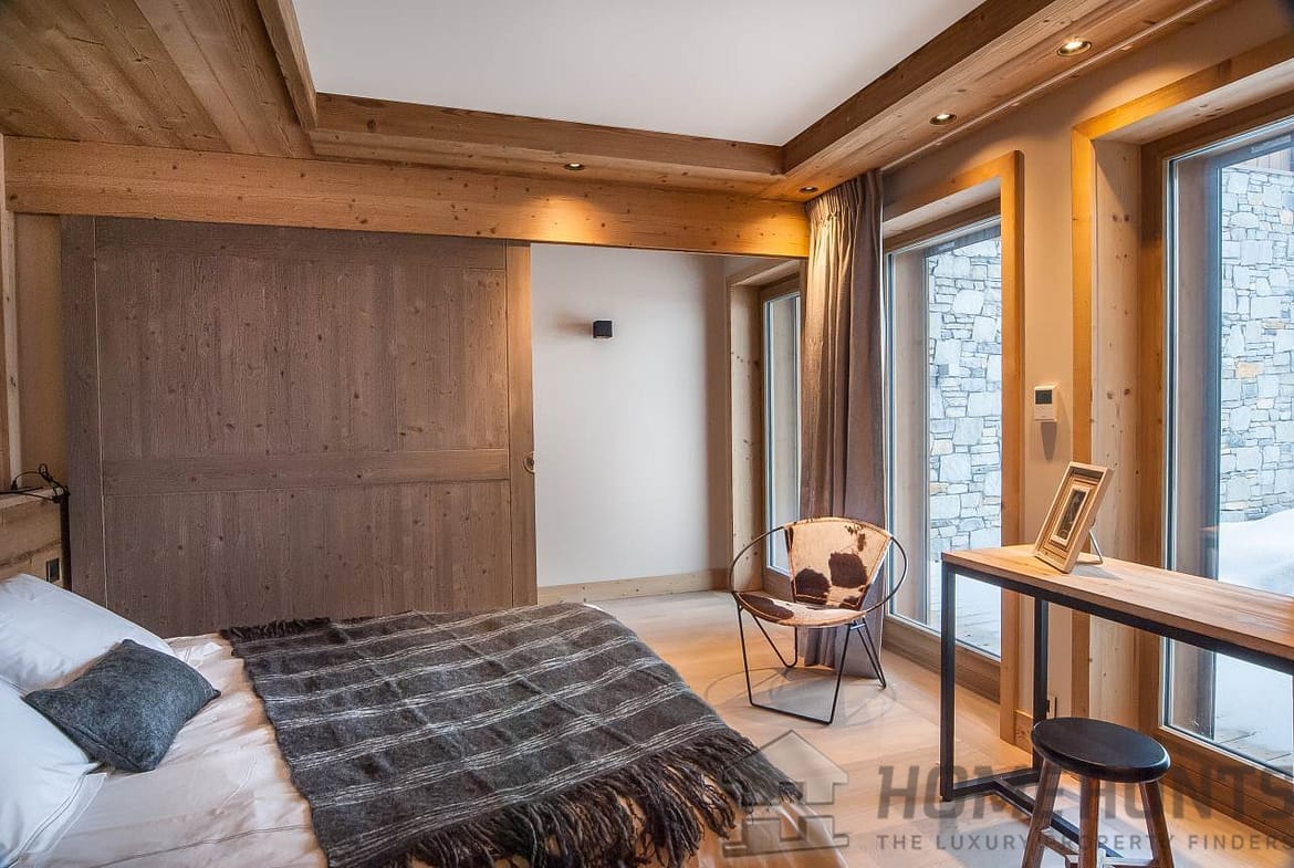 The chalet accommodates guests in five beautifully appointed en-suite bedrooms, each with private outdoor access or balconies—designed to combine privacy, comfort, and panoramic serenity.