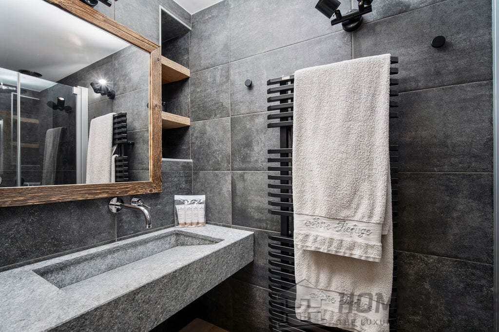The chalet has three double bedrooms with en-suite bathrooms, as well as a charming children’s bedroom that can accommodate up to four young guests.
