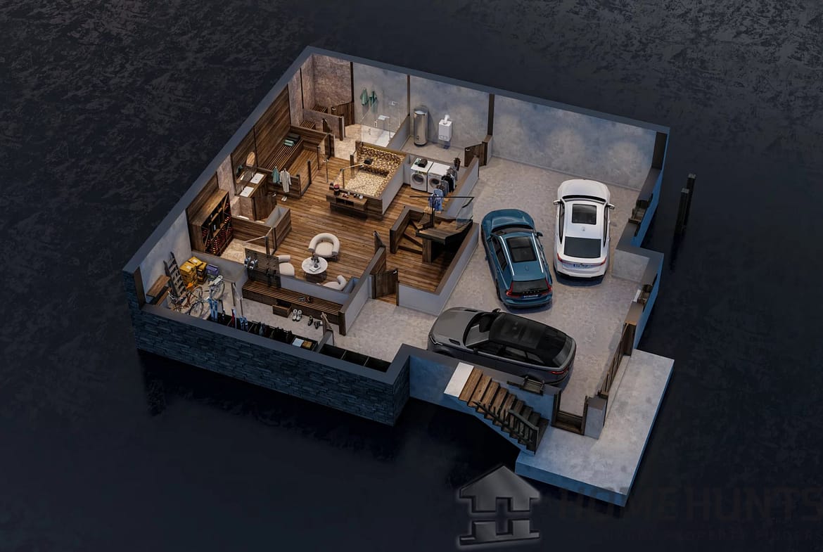 -In the Basement: a garage of 83 m2 (3 vehicles), a ski room, a cellar, a wine cellar, an airlock, a living room, a sauna, a hammam, a shower, a laundry room, a technical-room, a toilet ;