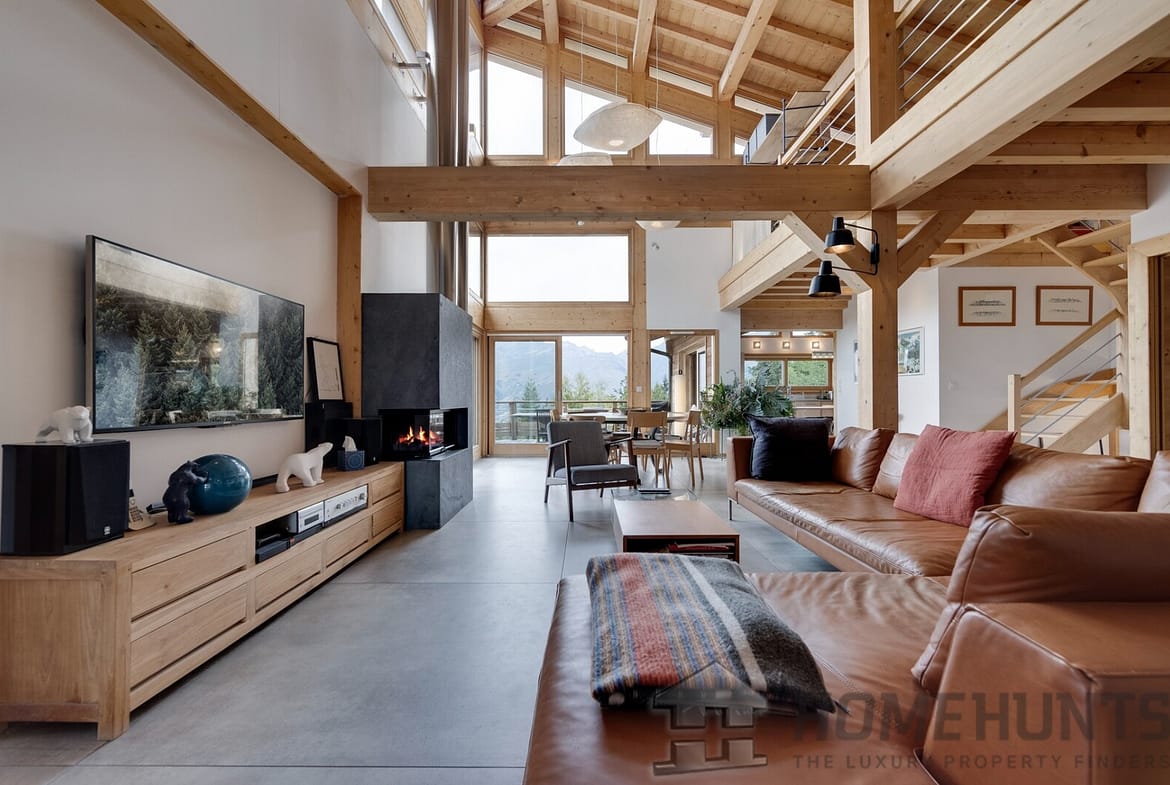 Its expansive bay windows and soaring ceilings flood the interiors with natural light, framing breathtaking mountain views that change with the seasons. Designed with both family living and entertaining in mind, the chalet offers an exceptional balance of space, comfort, and privacy.