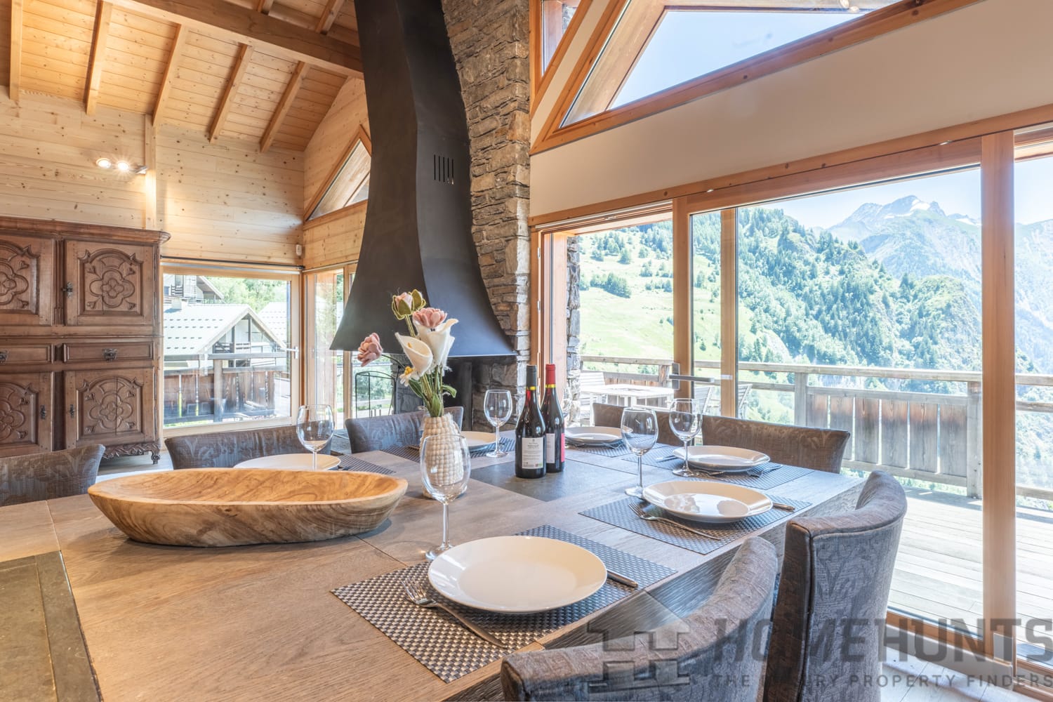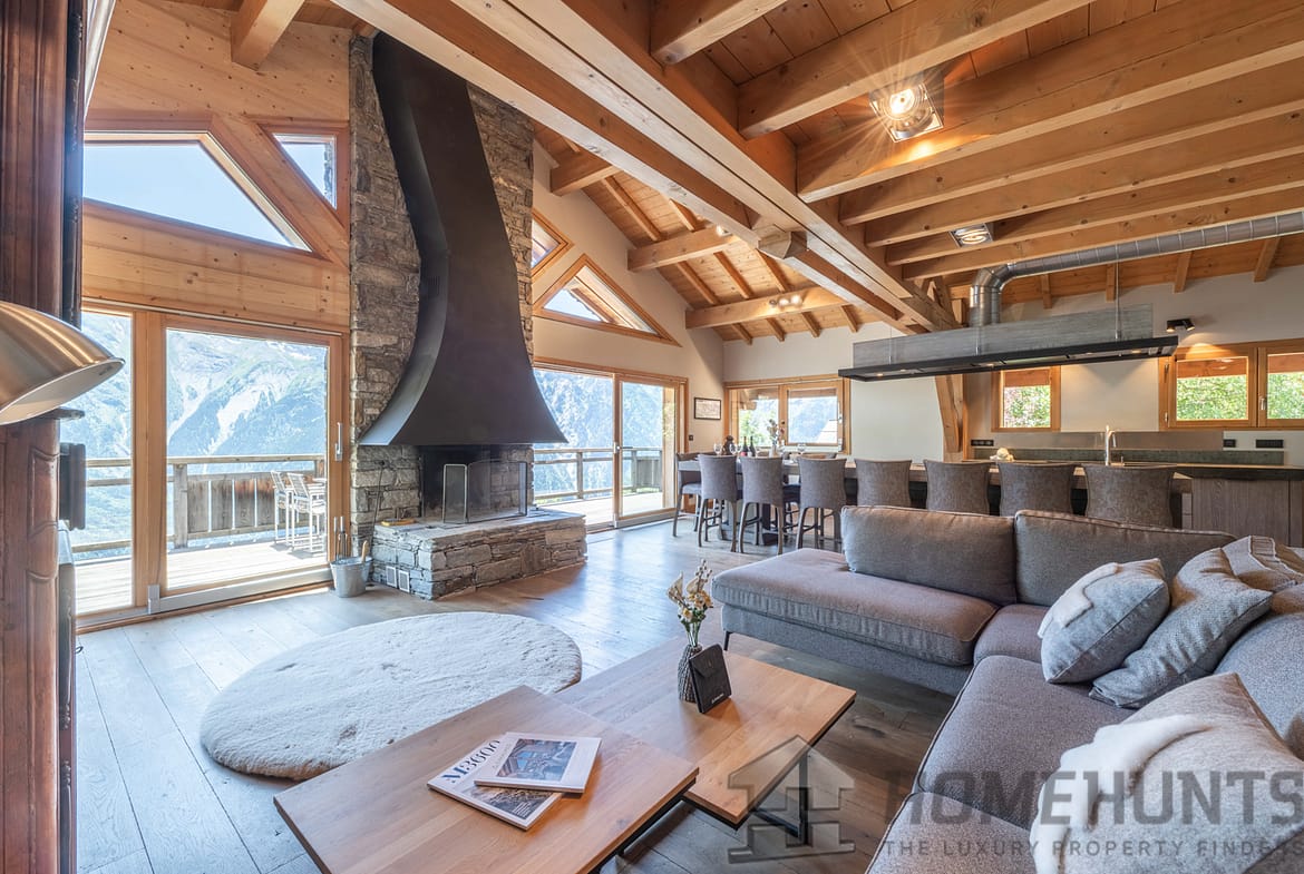 Perched in a commanding position at the southern edge of the resort, this remarkable 433 m2 detached chalet offers breathtaking 180-degree views across the surrounding alpine peaks—a rare opportunity for those seeking serene mountain living just 300 metres from the slopes.