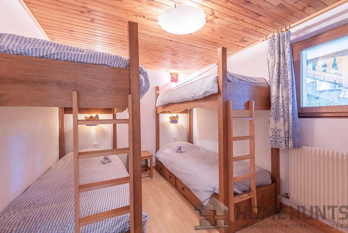 The chalet comprises five rooms, including four bedrooms, spread over three levels, and benefits from two private parking spaces.