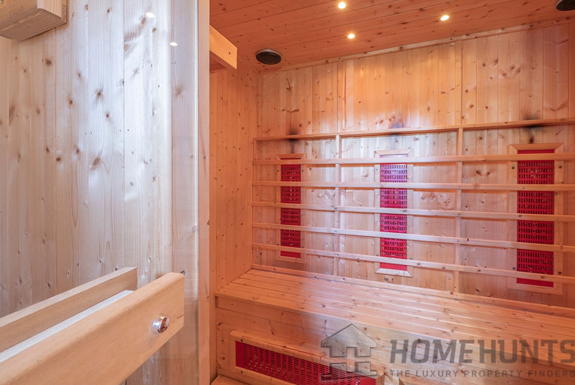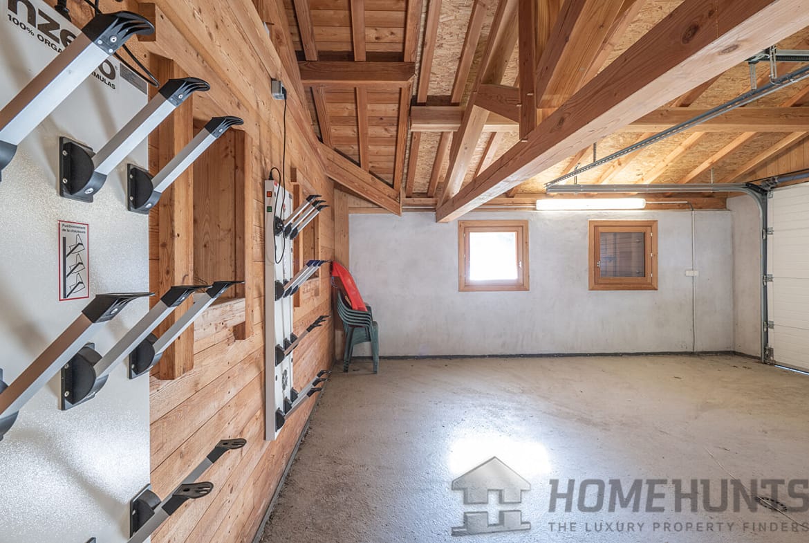 On the lower level, four large bedrooms open directly onto the garden, creating an intimate and relaxing atmosphere. You will also find a laundry room and a relaxation area with a sauna, perfect for when you return from skiing or hiking.
