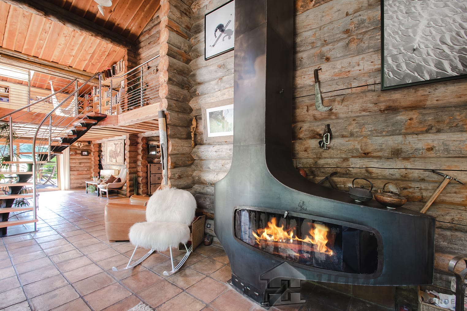 In a rural environment, this chalet, signed by the architect Mazza, offers beautiful volumes and the charm of a log construction.