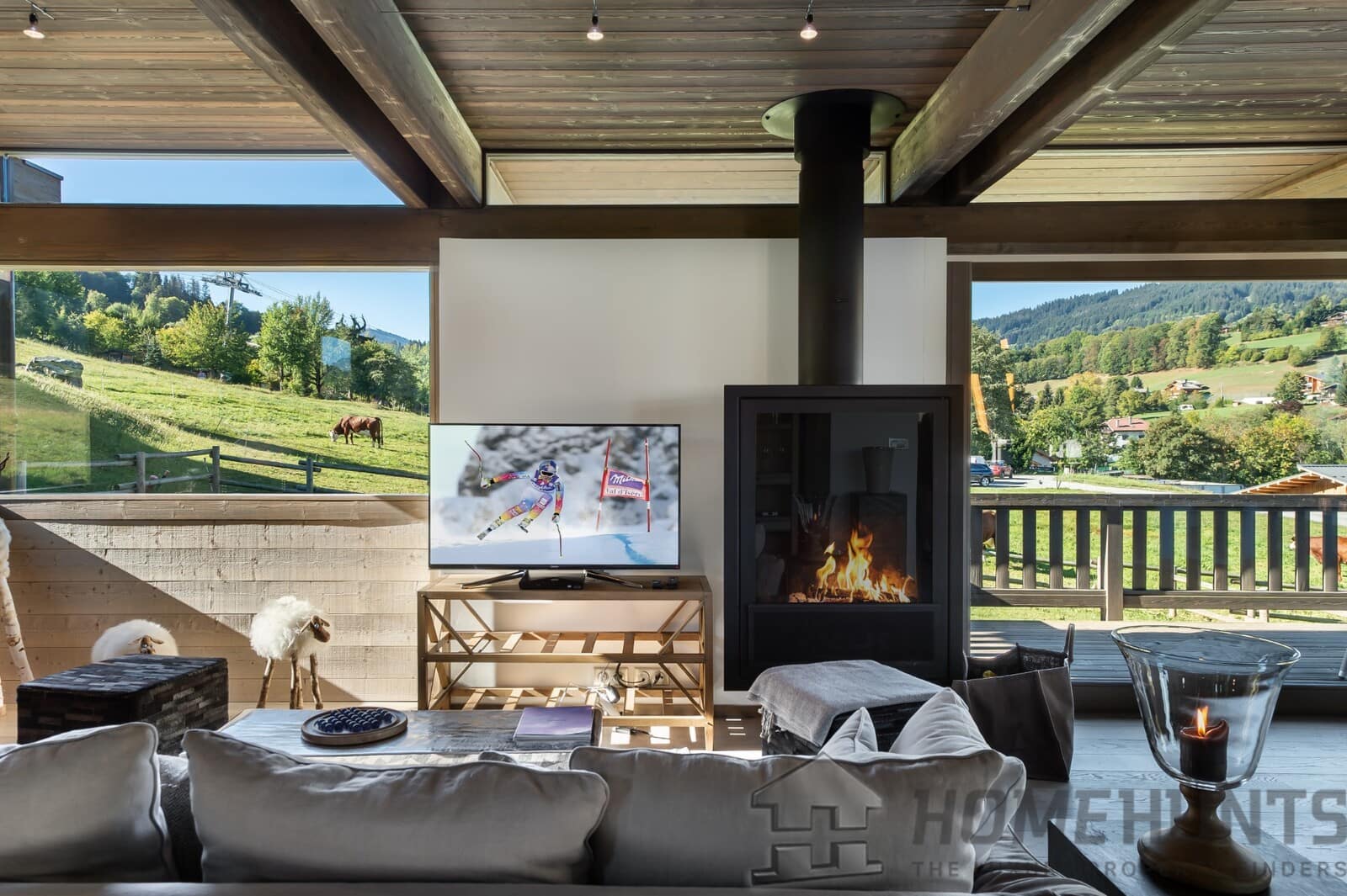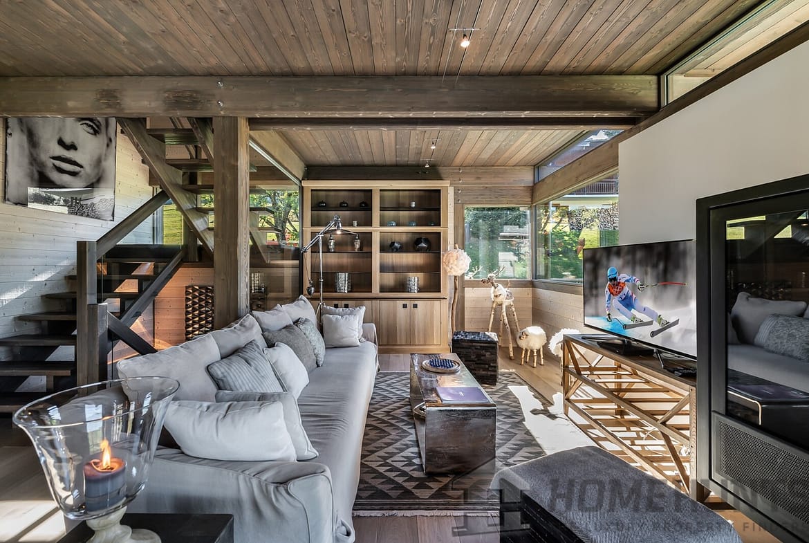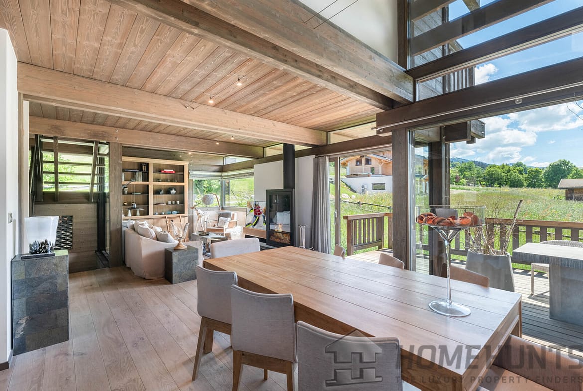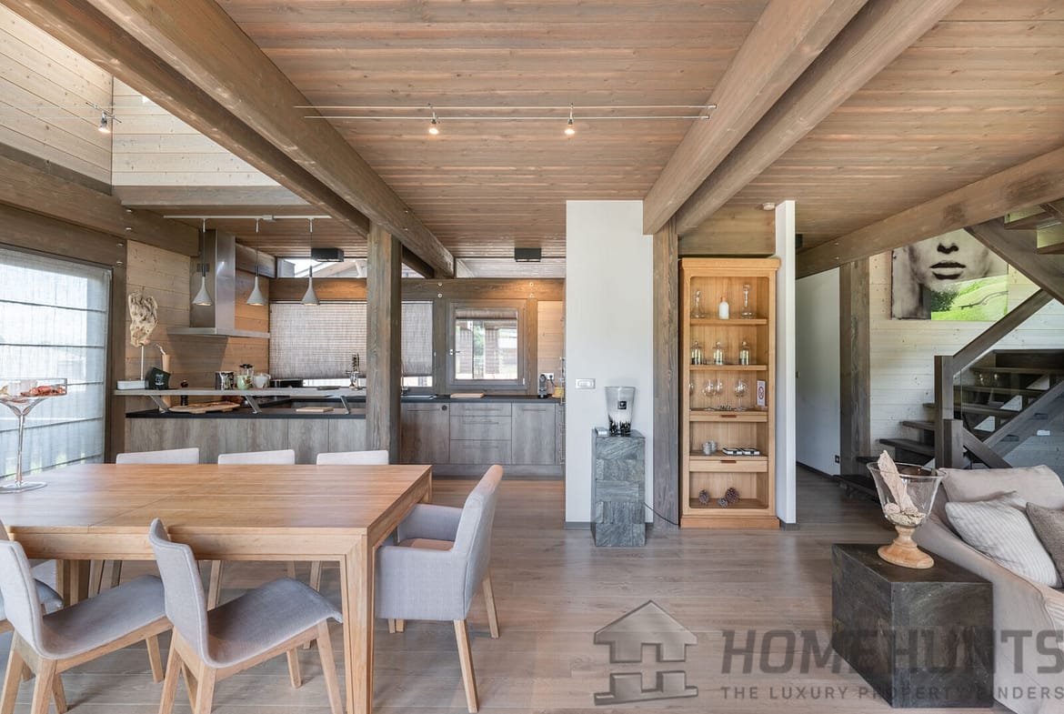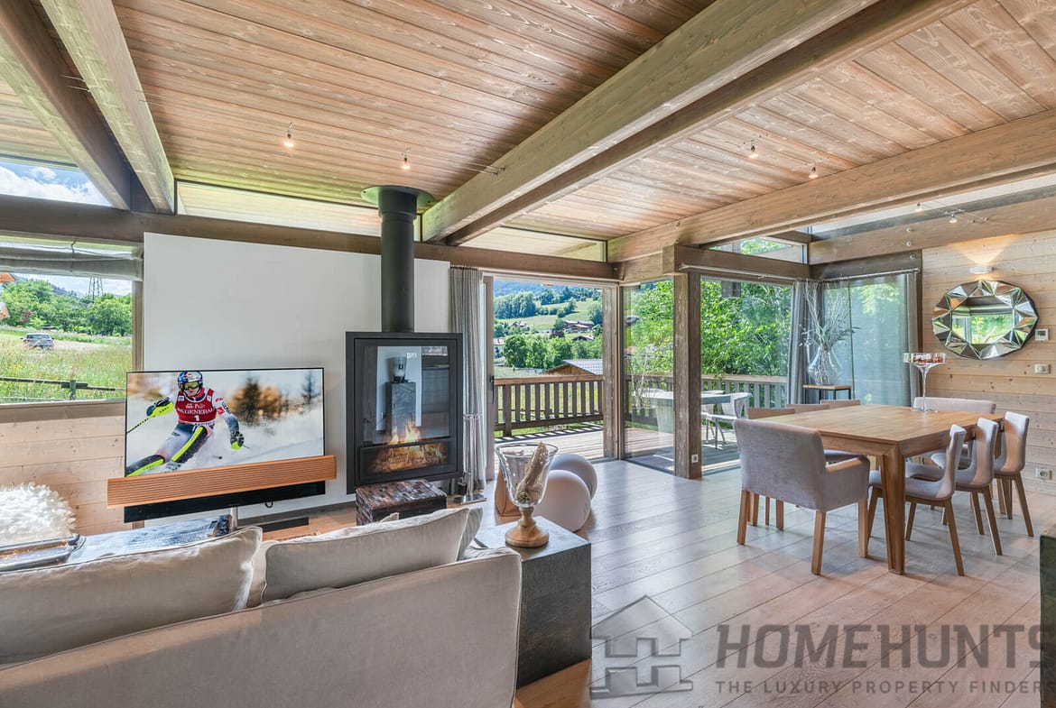 A recent construction, this chalet embraces the natural landscape with large picture windows that frame the surrounding peaks like living art. Spread across three levels, it features light-filled living spaces, refined interiors, and a warm, family-friendly atmosphere.