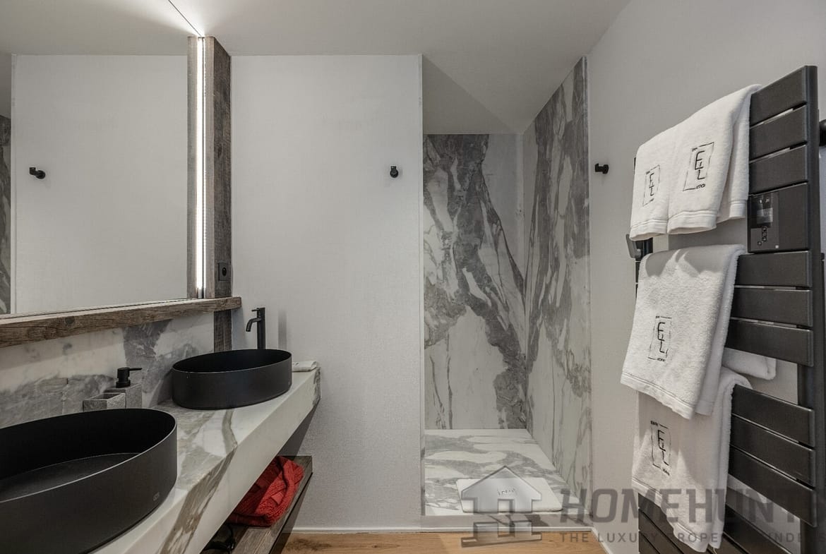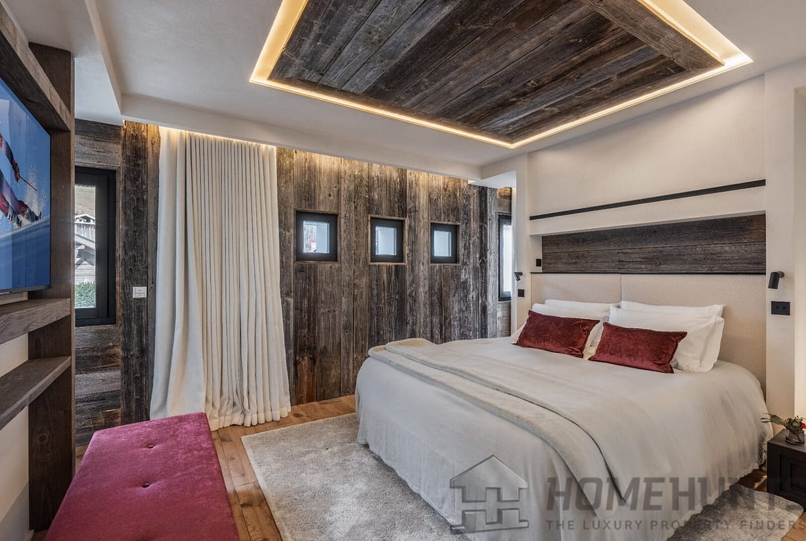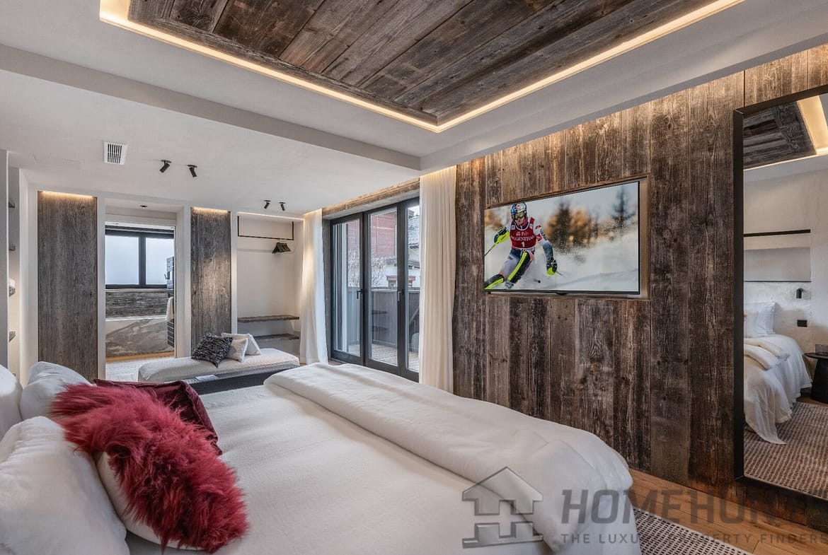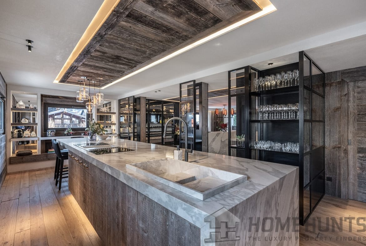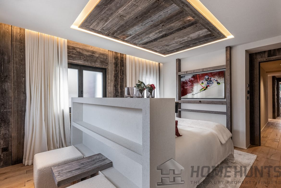 The property features six generously proportioned en suite bedrooms, all thoughtfully designed for privacy and relaxation, including a spectacular master suite with private lounge and balcony access. At the heart of the chalet, a soaring reception area and open-plan kitchen with bar create the perfect setting for both intimate gatherings and grand entertaining.