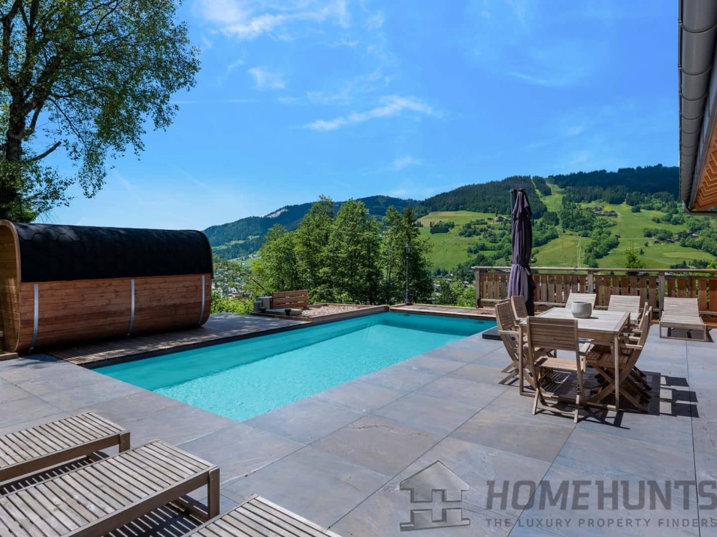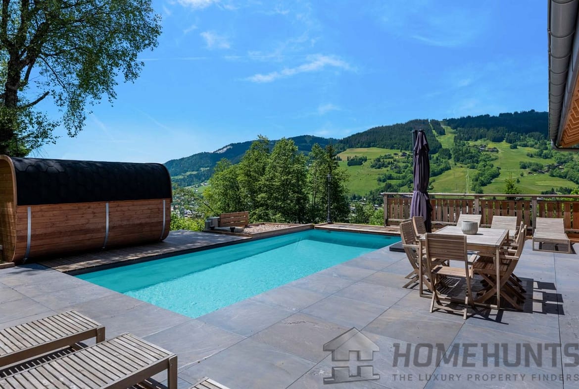 A magnificent outdoor heated swimming pool is available in both summer and winter, with breathtaking views of the surrounding peaks.