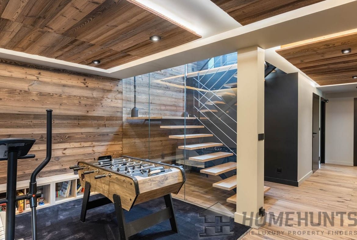 The chalet is designed to offer maximum comfort and entertainment, with a cinema room for convivial evenings, a games area with table football, and a sauna for moments of relaxation.