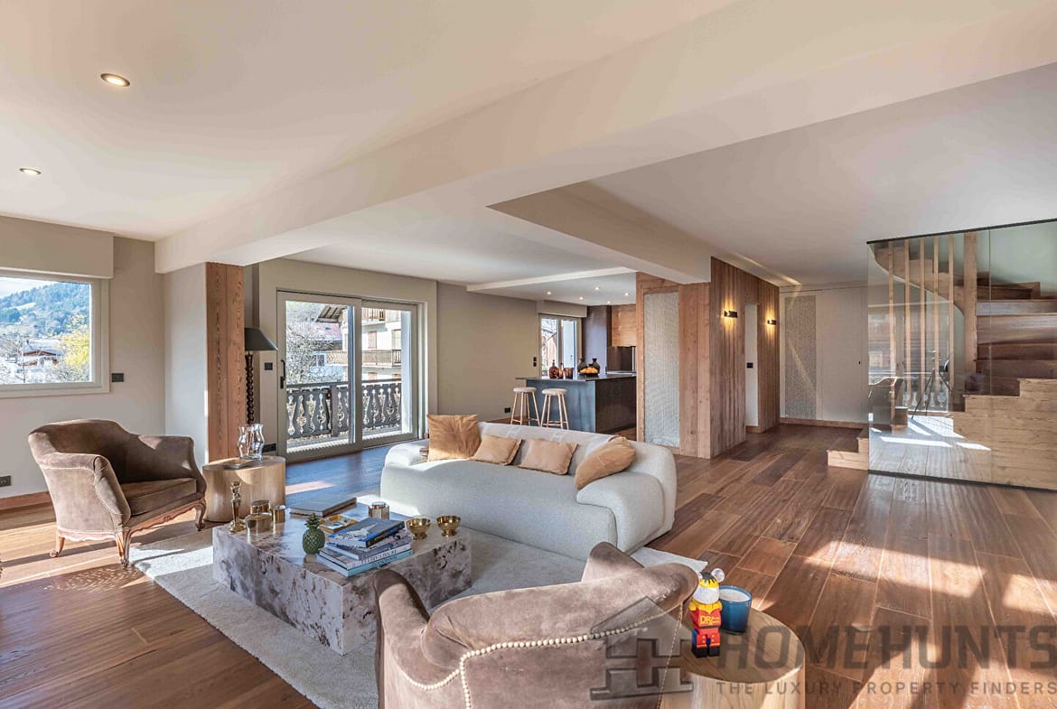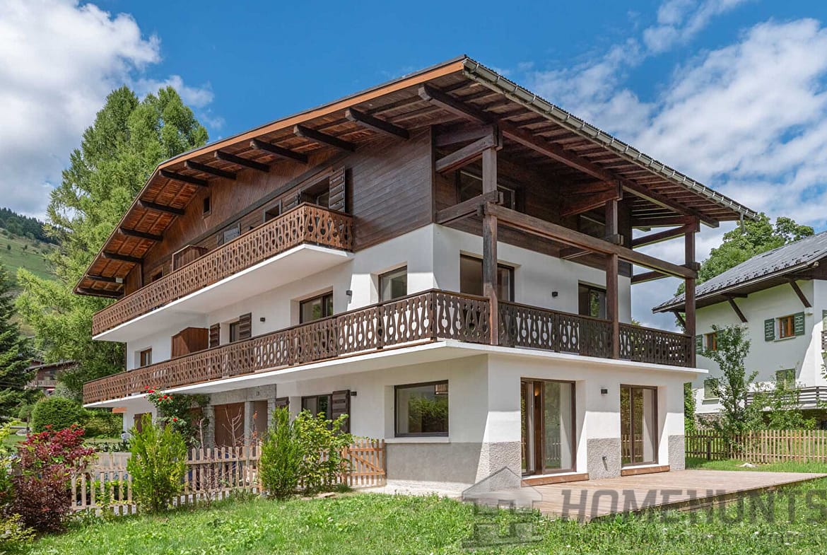 In an area close to the center of Megeve, just a few minutes’ walk from the village and the ski lifts, this superb, fully renovated triplex semi-detached chalet of approximately 202 m2 stands out for its elegance, brightness, and unobstructed views of the surrounding mountains.