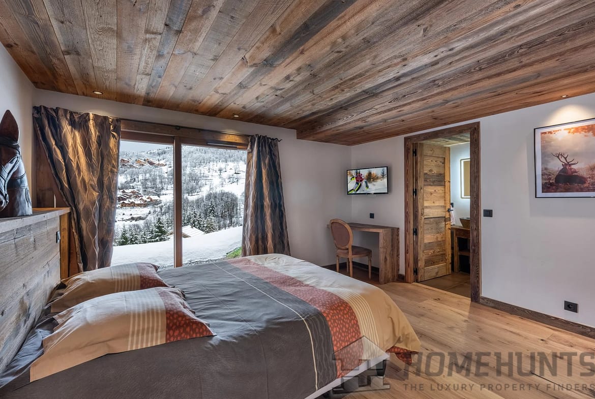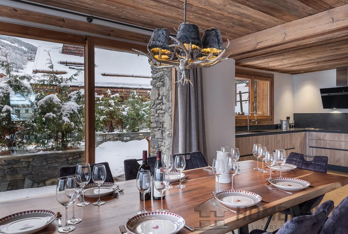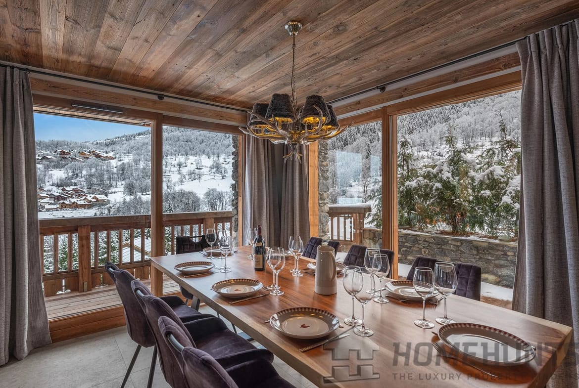 Located in the peaceful hamlet of Raffort, this elegant chalet has a prime location just 30 meters from the slopes, allowing for an easy ski-in return. The Olympe gondola and a shuttle, just a short walk away, provide direct access to the center of Meribel and the ski lifts.