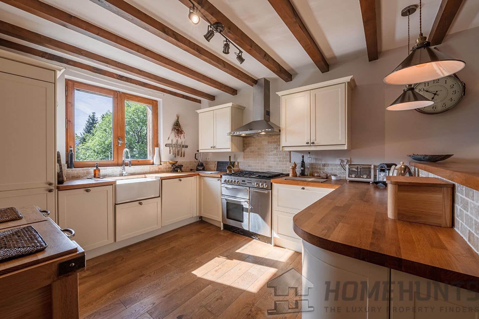 Located in a rural setting, this renovated character farmhouse combines old-world charm with modern comforts.