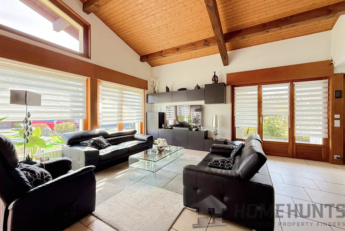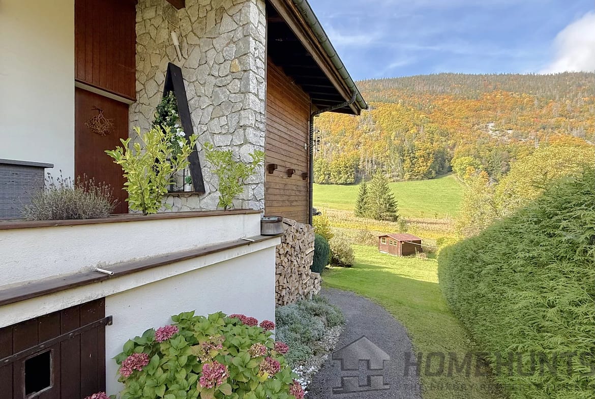 This south-facing chalet sits on a 1,650 m2 plot of land with a swimming pool, close to the center and ski resorts of La Clusaz and Le Grand-Bornand. It is located in a quiet area with unobstructed views of the Aravis mountain range.