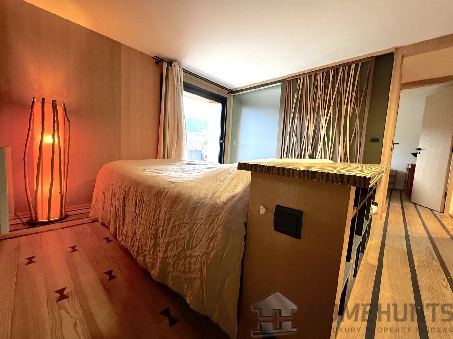On the second floor, you’ll discover an open-plan kitchen opening onto a spacious living room with panoramic windows, revealing views of the lake, town and mountains. The fireplace in the living room creates a warm and friendly atmosphere. Large picture windows give access to a balcony, ideal for enjoying the surrounding scenery. On this floor, you’ll also find a bathroom, WC and office space, which can be converted into a third bedroom.