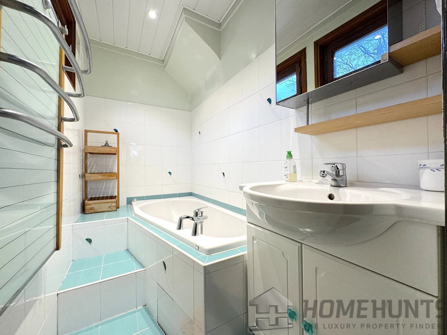 The first floor, which has been completely renovated, includes two bright bedrooms with direct access to a large terrace featuring a lounge area for relaxing. There’s also a shower room, WC, laundry room and dressing room.