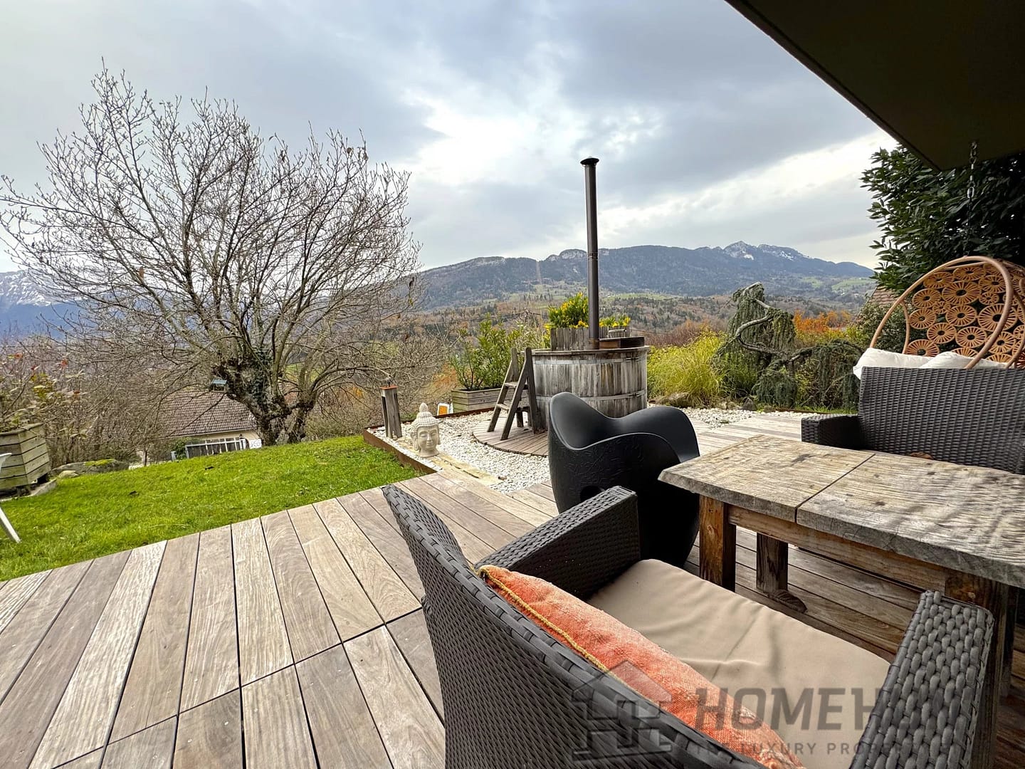 St Jorioz, charming chalet built in 1970, is located on a hillside in the town, offering an idyllic setting for lovers of nature and tranquility. The living area is 90 m2, with a total plot of 600 m2.