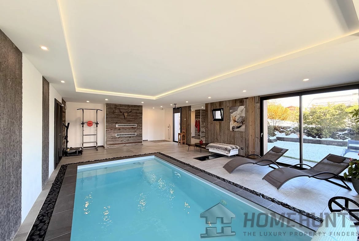 – An exclusive 4x8m indoor pool and wellness area with direct access to the outdoor jacuzzi and terrace—designed for alpine relaxation in total privacy