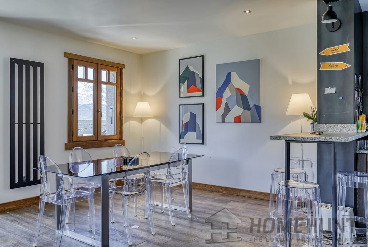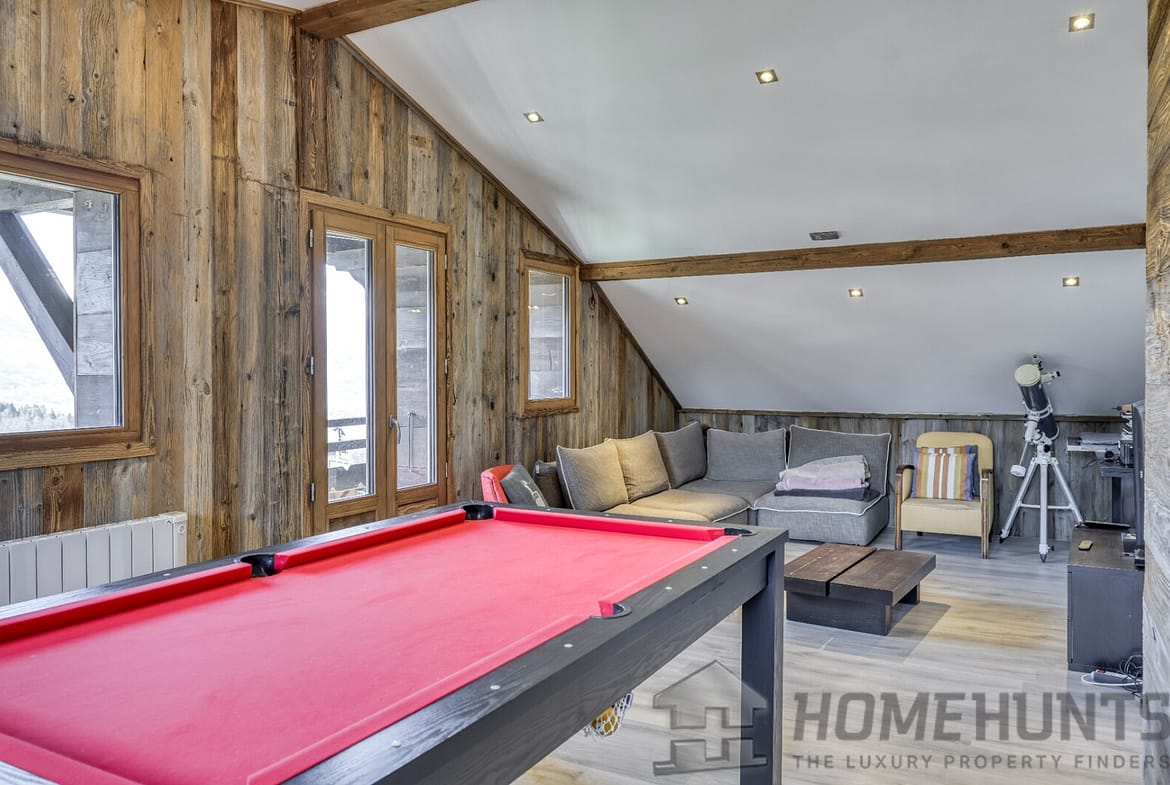 It benefits from an exceptional living environment, combining peace and quiet with immediate proximity to shops and amenities. The chalet has 4 bedrooms, two shower rooms with toilets and a large lounge/games area. The interior has been recently renovated using quality materials, creating a warm, modern atmosphere; The bright living room opens onto a vast 100 m2 terrace, perfect for enjoying the fine weather and uninterrupted views.