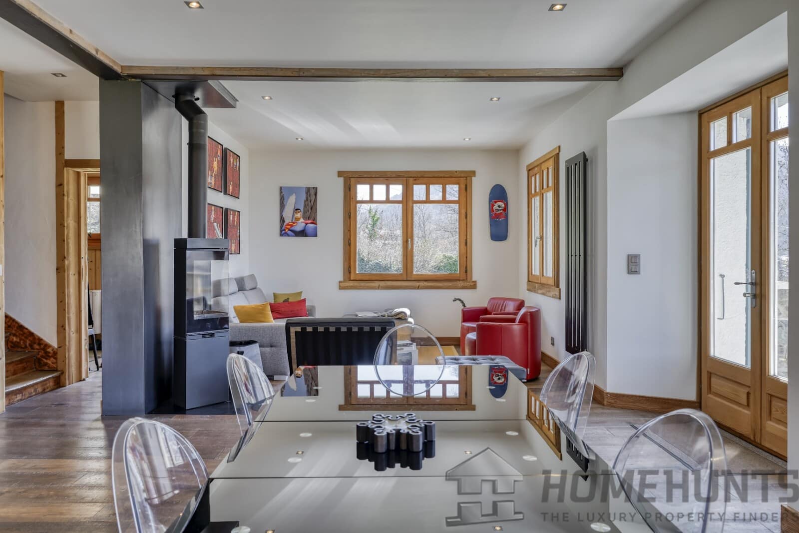 Located less than 5 minutes’ walk from the center, this recently renovated 50’s chalet offers around 150 m2 of living space, making a total of 180 m2.