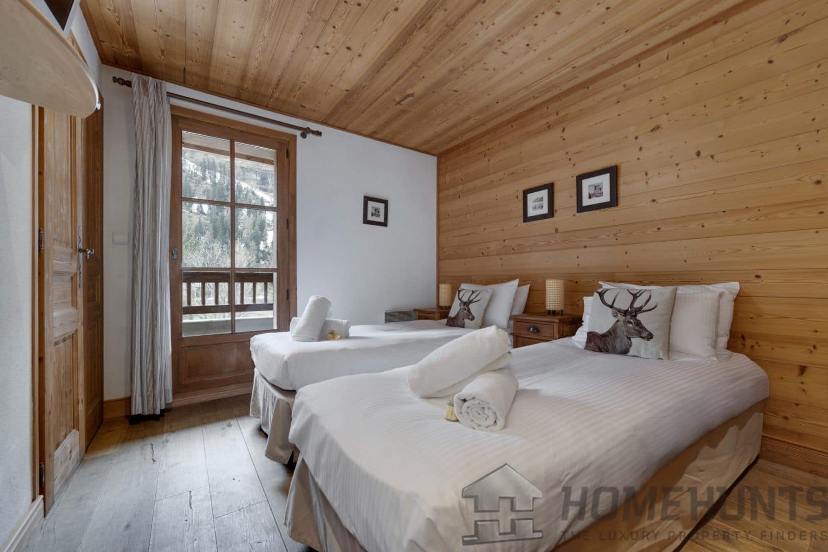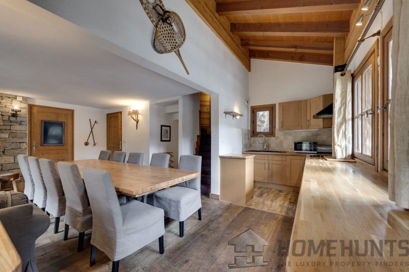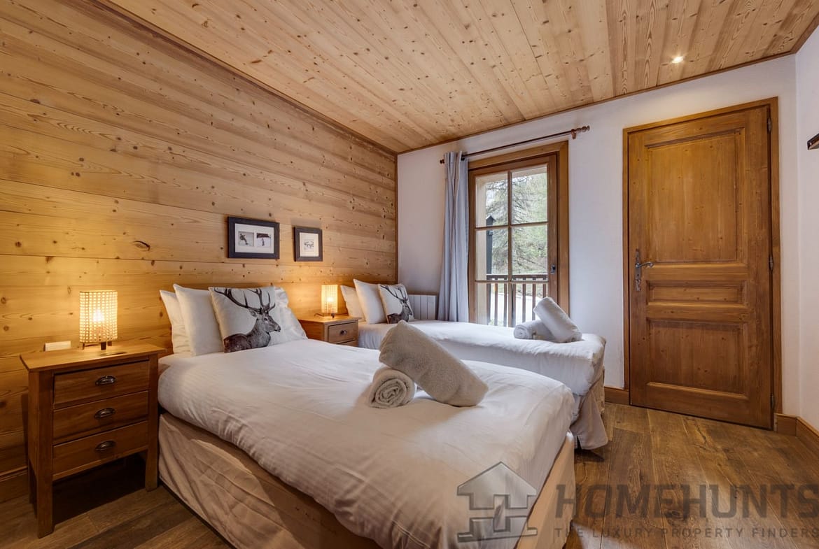 Spread over four floors, this chalet offers a generous capacity for guests. On the ground floor, you’ll find an entrance hall, a garage with a ski room, and a double en-suite bedroom. The first and second floors each feature two double en-suite bedrooms. The third floor hosts a guest WC, a fully equipped open-plan kitchen, a cosy living room, and a welcoming dining area. On the top floor, a triple en-suite bedroom completes the property.