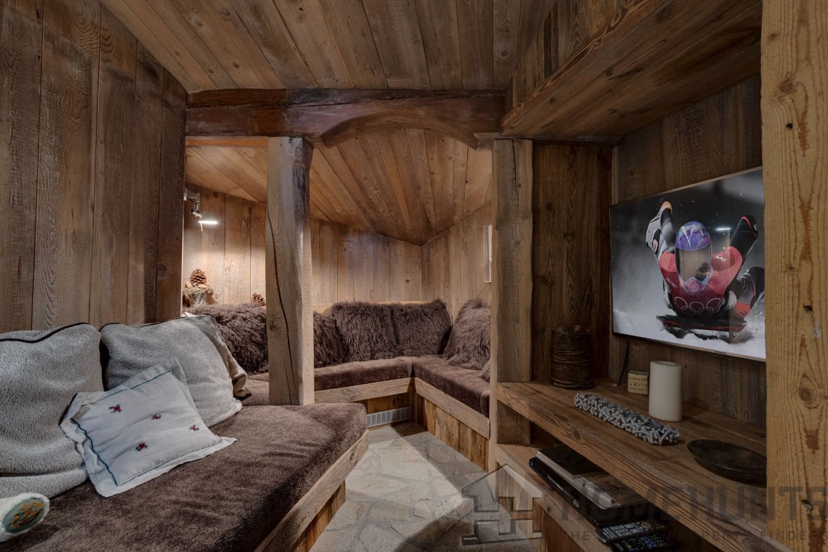 Spread over four levels, this unrivalled 500 m2 chalet features six en suite bedrooms, a magnificent living room with dining area, two lounges and a bar area surrounding the large stone fireplace.