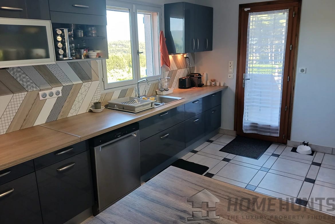 The guest accommodation includes four bedrooms plus a two-room apartment, allowing for versatile hosting options. Guests can relax on 400 m2 of terraces surrounding a magnificent infinity pool, creating the perfect space for sunbathing, al fresco dining, or simply admiring the serene countryside views.