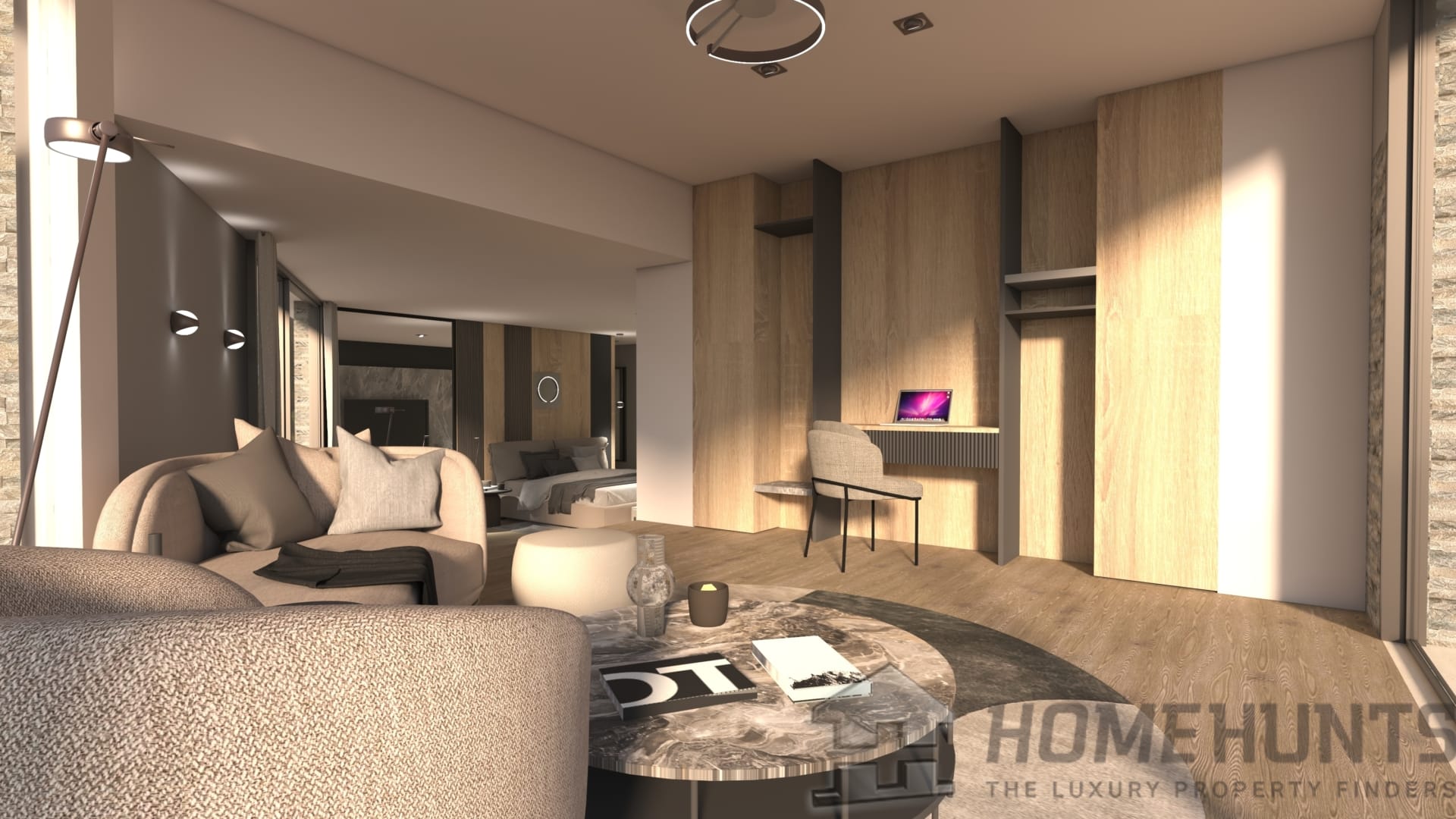 Inside this already approved project, pure luxury awaits you with two spacious master suites of 140 m2 and 100 m2, accompanied by three further guest suites of 50 m2 each, which guarantee the highest level of living comfort. The outdoor area boasts a spacious pool, while the 150 m2 spa area offers an indoor pool, gym and treatment room for an exclusive wellness experience. For the best entertainment, the property has a home cinema and offers maximum flexibility with access options from the front and rear.