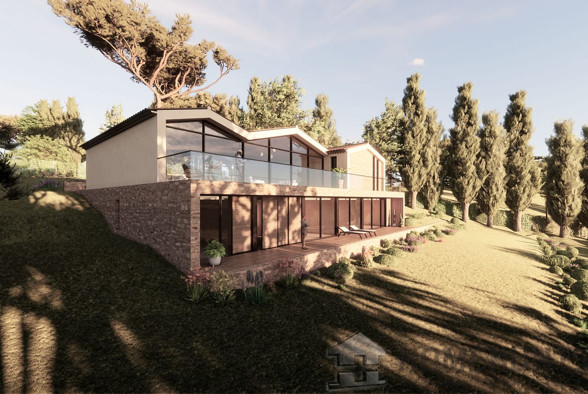 – The villa combines modernity and tradition, with its generous volumes, bay windows, Provencal tiles and perfect integration into the landscape: around 330 m2 of living space 110 m2 of living space, bathed in light with spectacular high ceilings