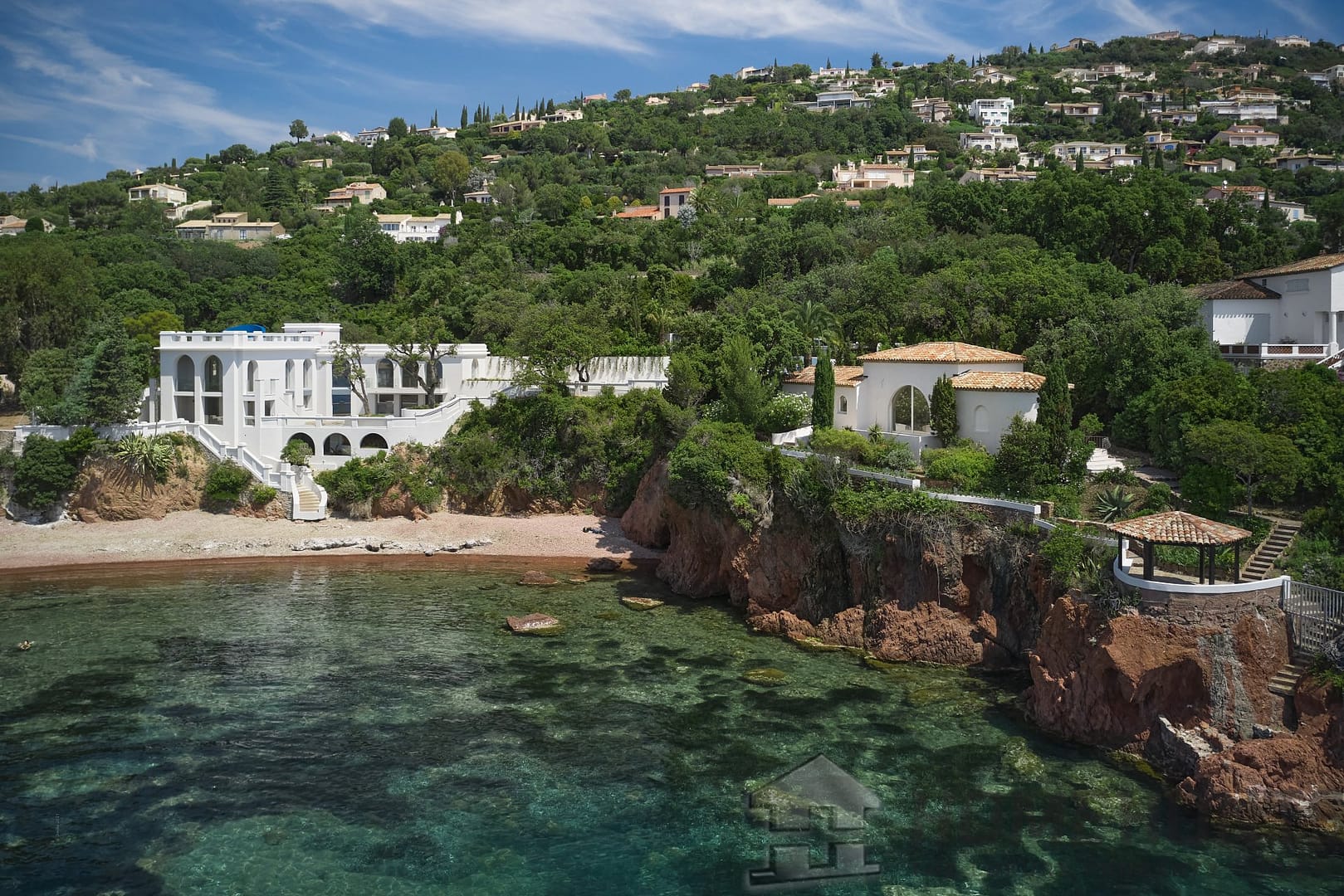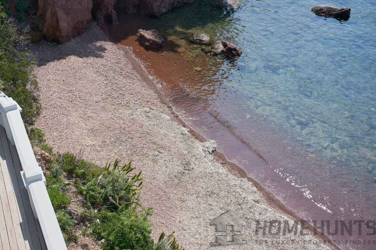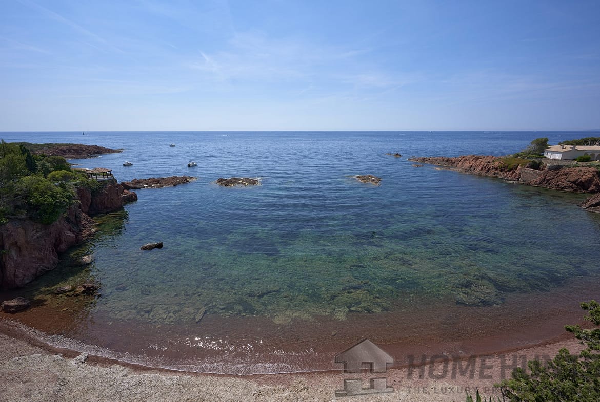 In a wild environment between Théoule-sur-Mer and Saint-Raphaël, the property offers a splendid linear view on the sea with the beach and the red rocks of the Esterel at its feet.