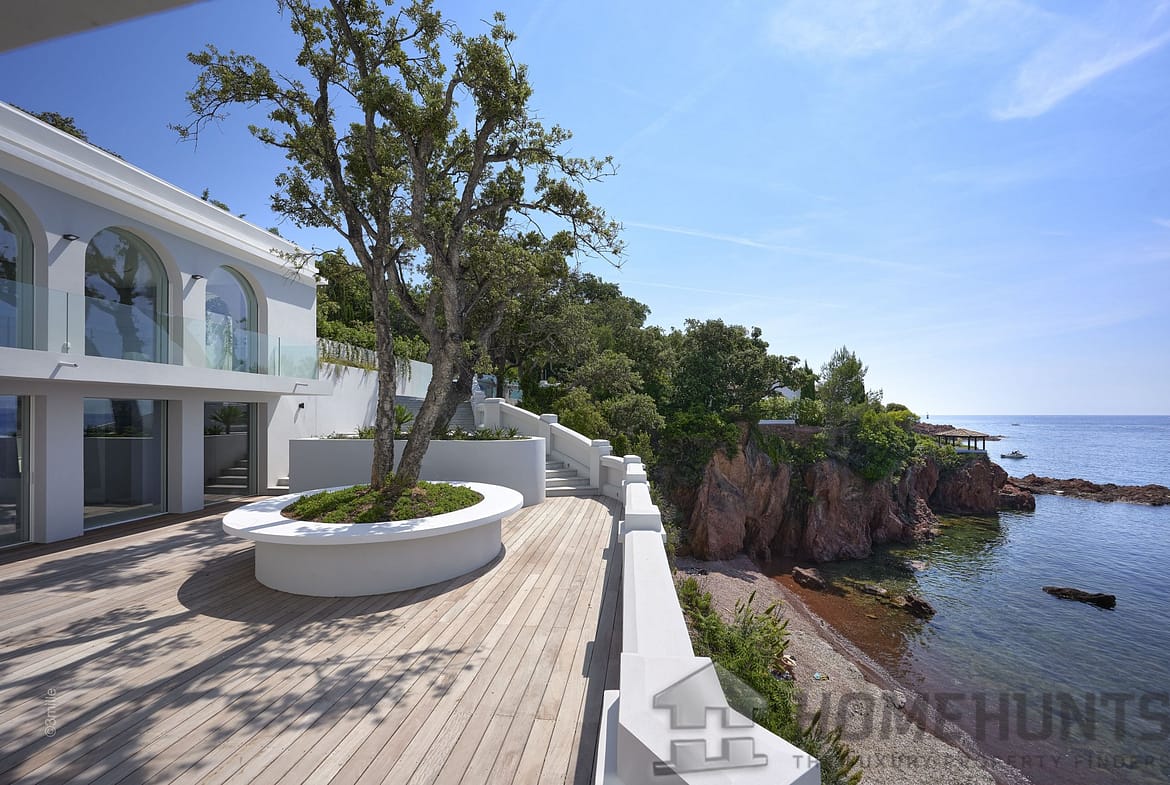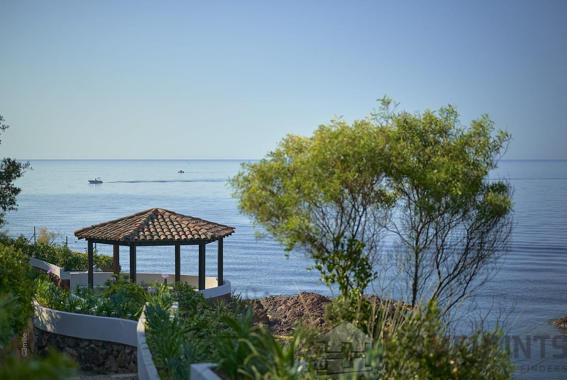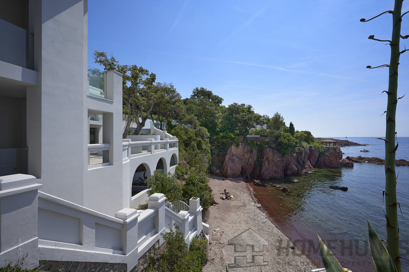 In a wild environment between Théoule-sur-Mer and Saint-Raphaël, the property offers a splendid linear view on the sea with the beach and the red rocks of the Esterel at its feet.