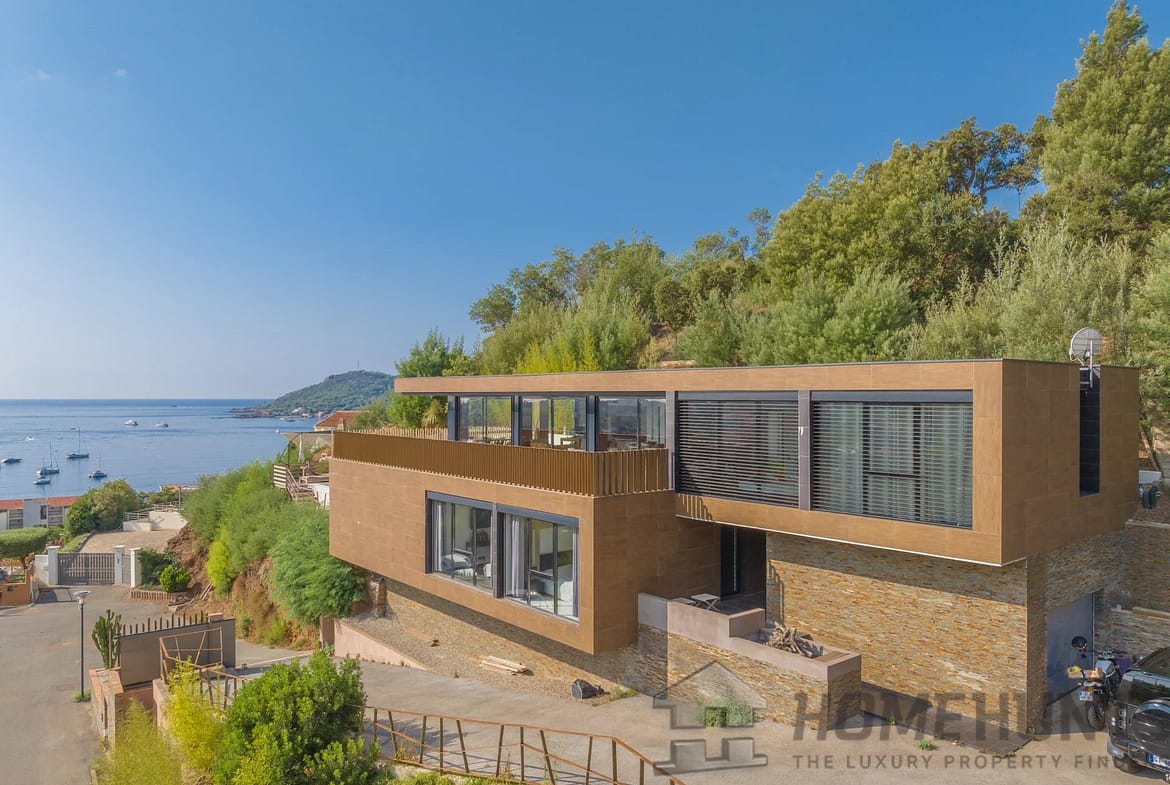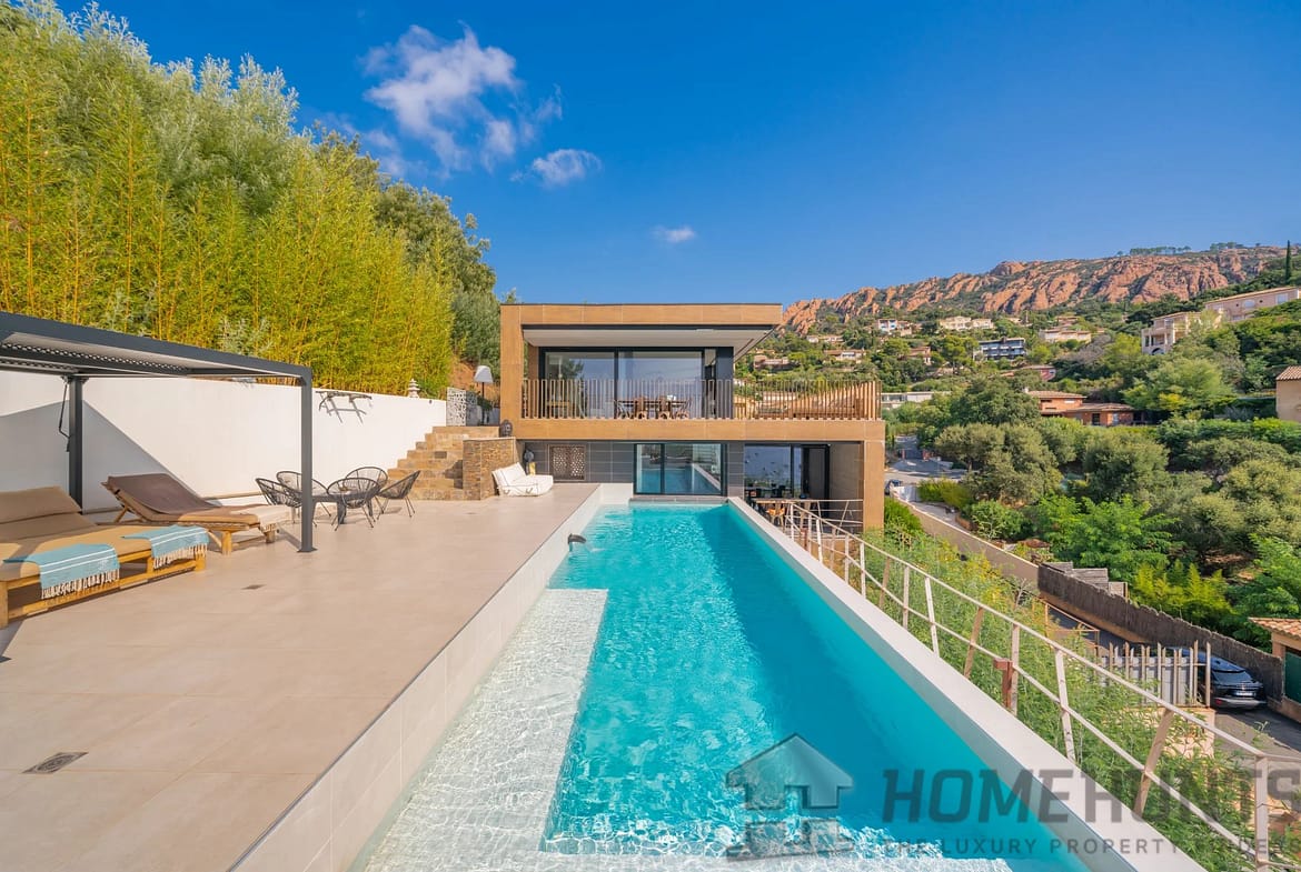 Agay: superbly designed and integrated contemporary villa with sea views over the Agay bay and the Esterel mountains, 15 minutes’ walk from the beach and shops.