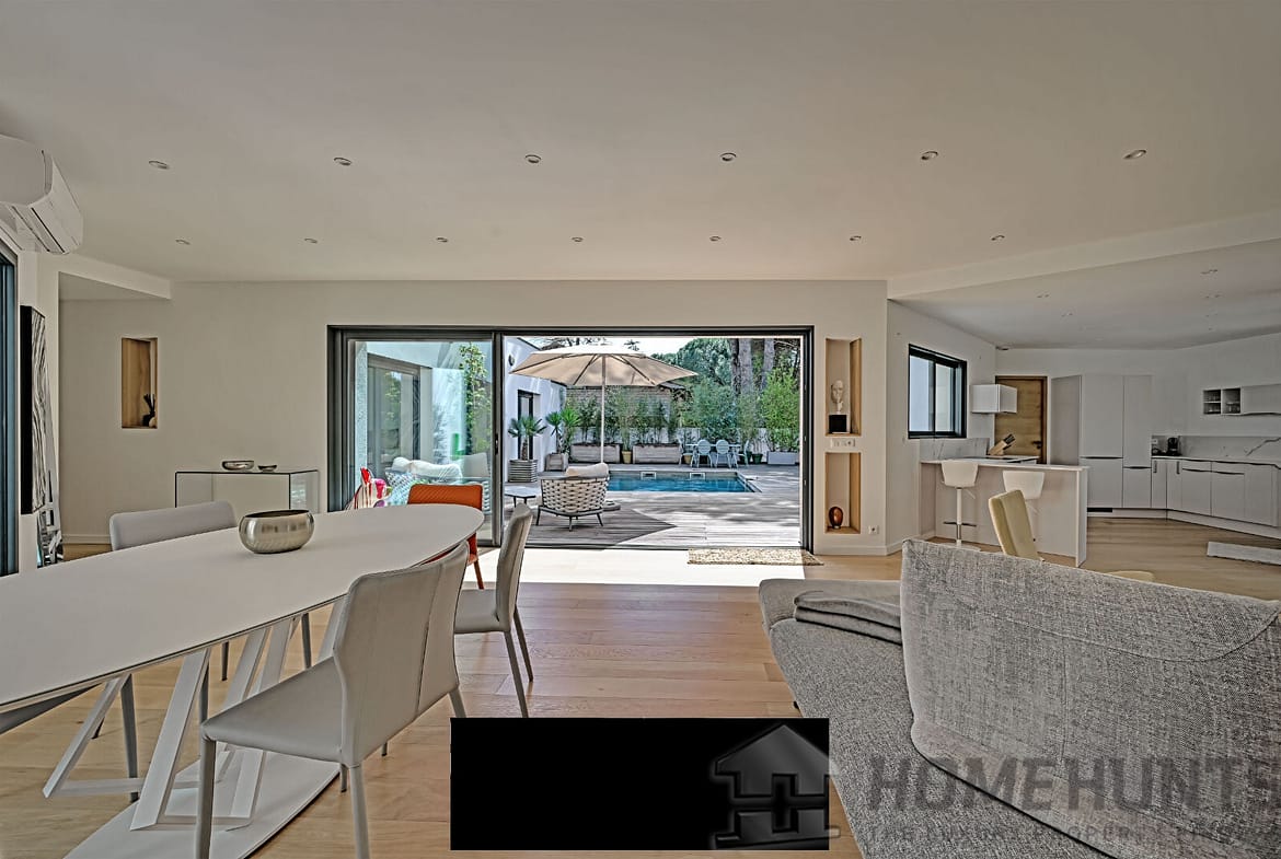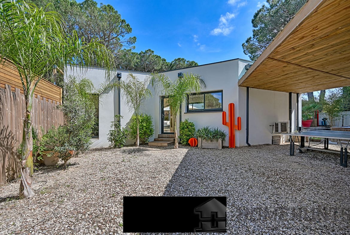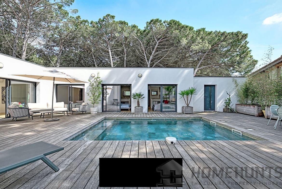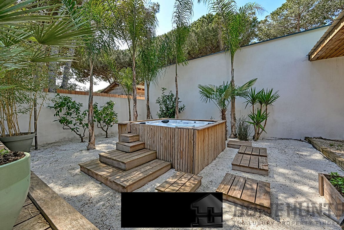Nestled in the pine forest, this recent villa designs its living spaces around a magnificent exotic wood terrace equipped with a charming Balinese-style pool. The house is spread over approximately 150 m2 on one level and nearly 120 m2 of terrace, a true extension of the living space for indoor-outdoor living in complete privacy for a large part of the year. Large sliding bay windows open the view from the terrace to this vast and welcoming living room highlighted by beautiful parquet flooring. The new open kitchen, complemented by a large pantry, takes its place in this bright living space which also opens onto a pretty patio, a true link between the living area and the sleeping areas. 4 bedrooms are available and each bedroom benefits from a private shower room or bathroom.