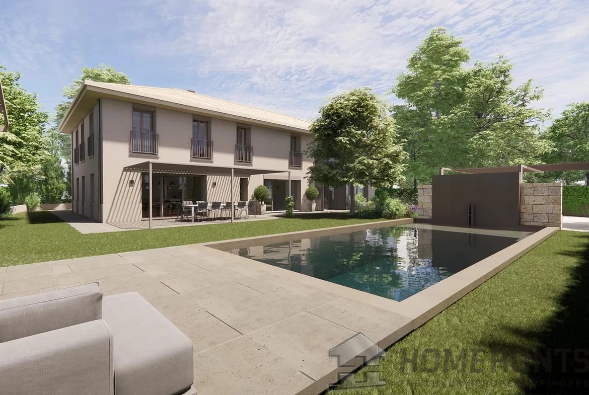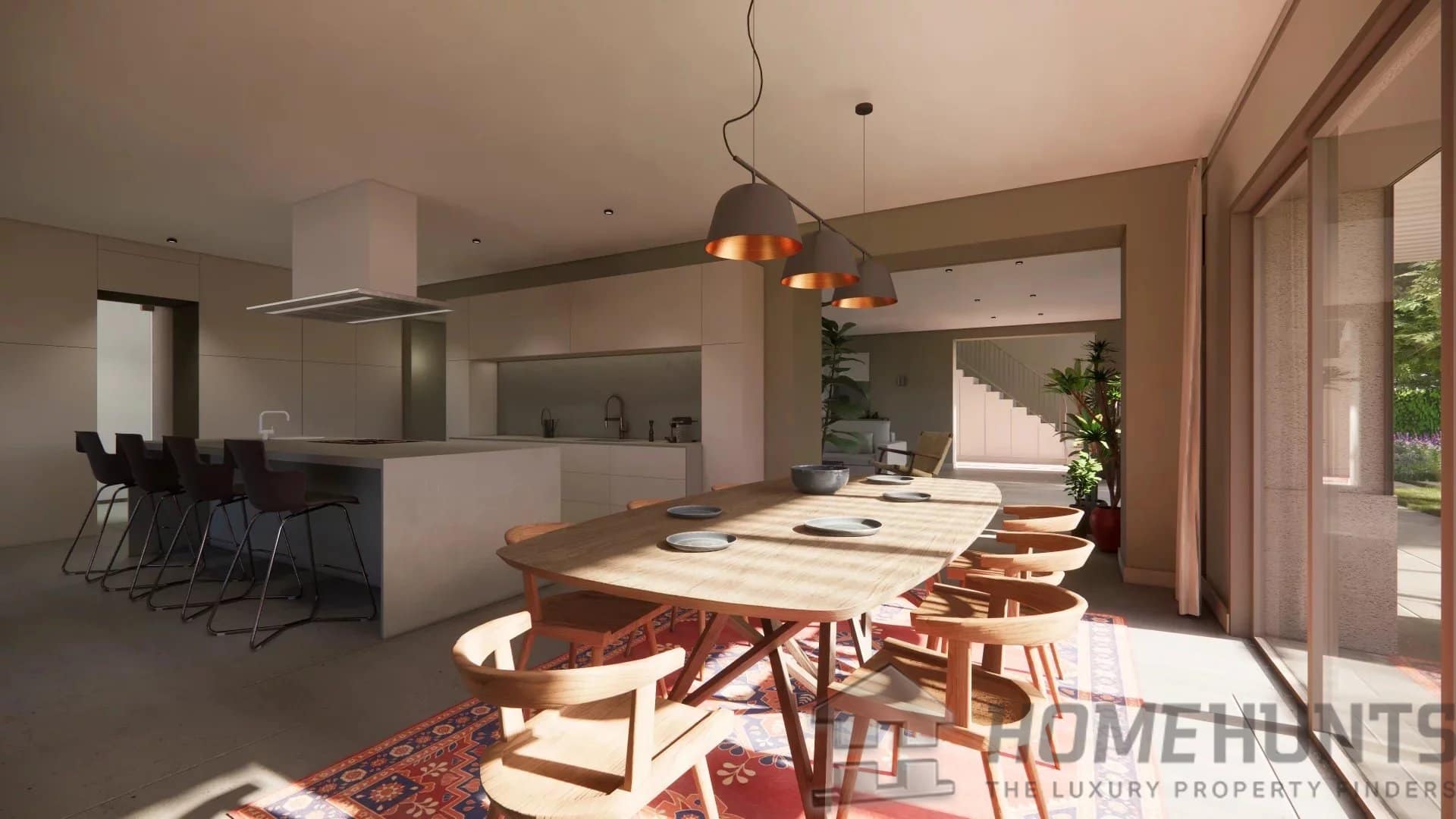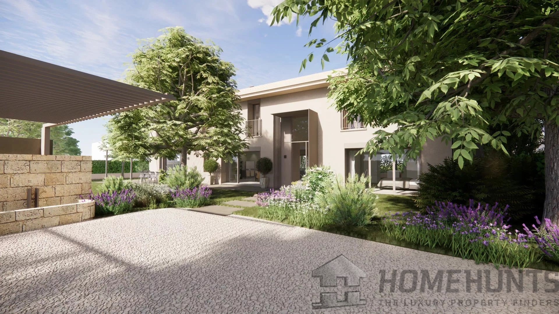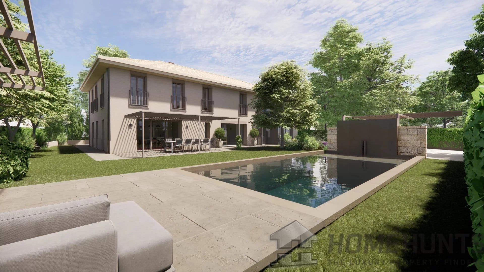 Recently built and spanning approximately 300 m2, this refined residence is set on a beautifully landscaped 900 m2 plot, complete with a sleek swimming pool and unobstructed views, creating an atmosphere of understated luxury and serenity.