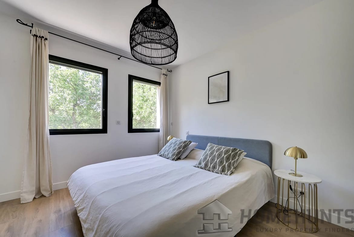 Outdoors, the landscaped garden of 2,153 m2 is impeccably maintained and includes a heated saltwater swimming pool (10 x 3,5 meters), a pool house with a summer kitchen, a closed garage, and multiple parking spaces. An automatic irrigation system supplied by the Canal de Provence, an alarm system, and meticulous finishes throughout enhance the property’s everyday comfort.