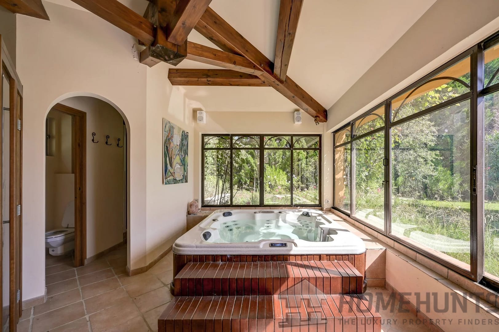 The landscaped grounds feature a producing olive grove yielding 350 liters of oil per year, an orchard, organic permaculture vegetable garden, over 250 rose bushes, and 2,600 m2 of irrigated lawn.
