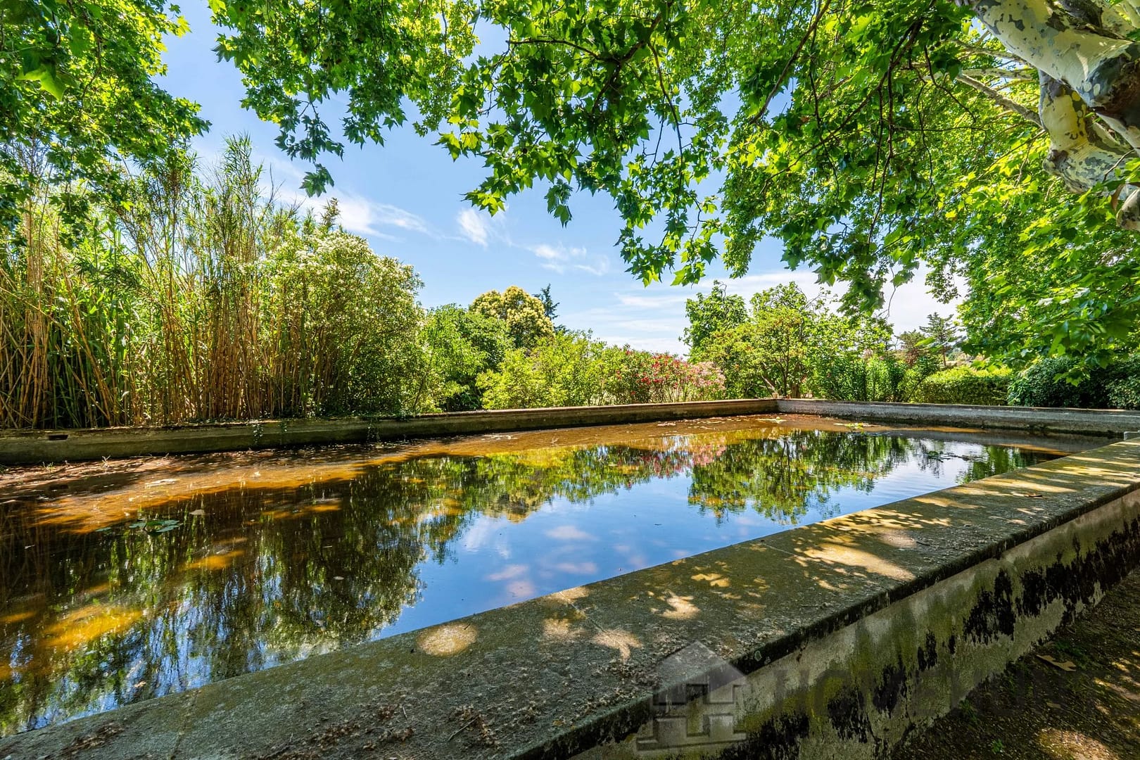 20 minutes west of Aix-en-Provence, this property of approximately 3 ha and its Mas full of character welcome you through a shaded driveway of majestic plane trees, decorated with an old basin style pool of 18m supplied with water by a source.