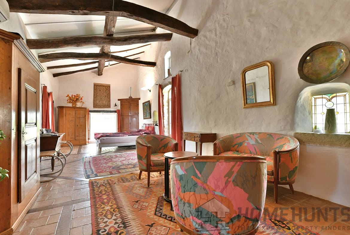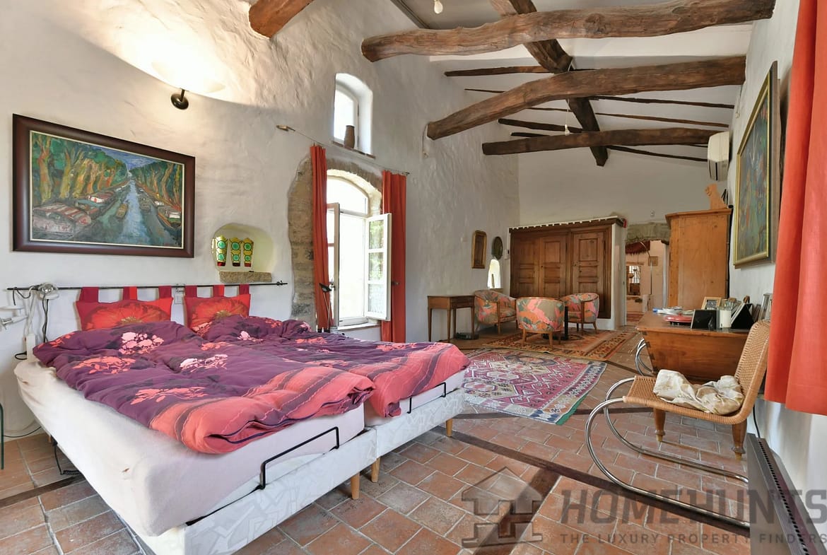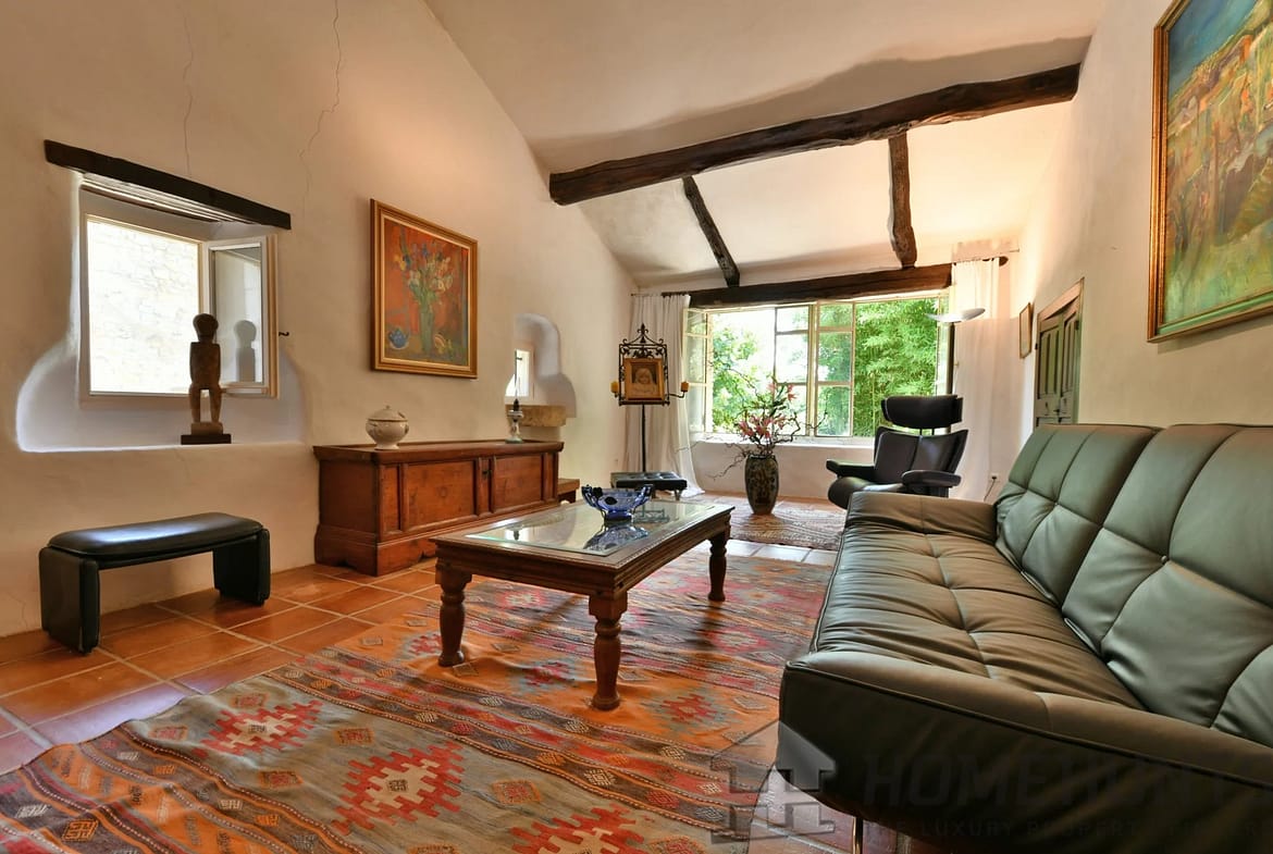 Beautiful 280 m2 village farmhouse, built on stunning 12th-century vaulted ceilings, opening onto the garden with separate guest apartment: living room and kitchen, 1 bedroom and a bathroom.