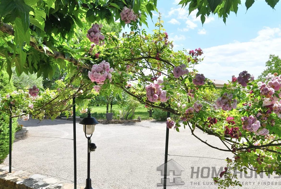 Under the arches, three decorative pools with a fountain create a Zen atmosphere. Garden shed, gazebo, automatic gate.