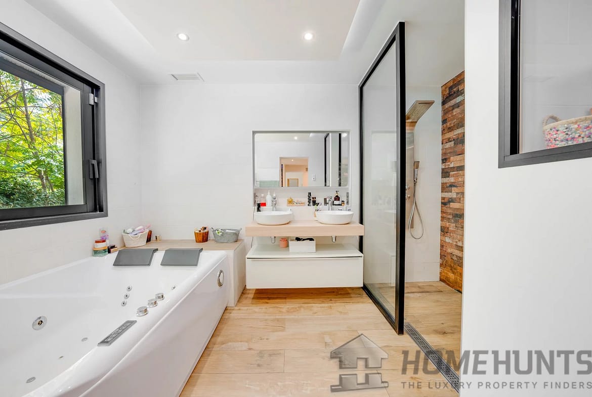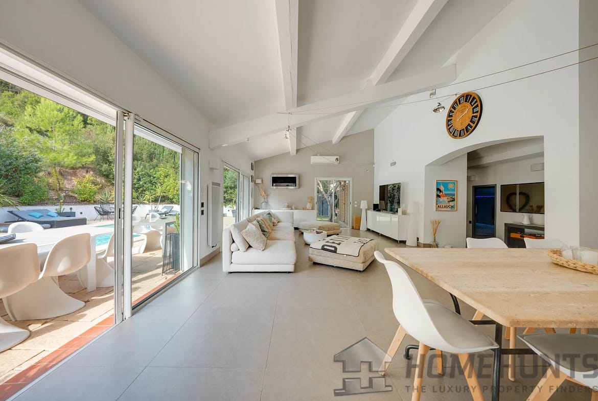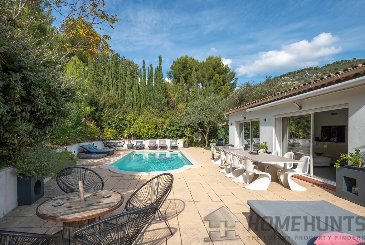 The house sits on a superb landscaped plot of 3,100 m2, completely unoverlooked, surrounded by greenery and tranquility, offering a truly peaceful haven in the heart of the Allauch hills.