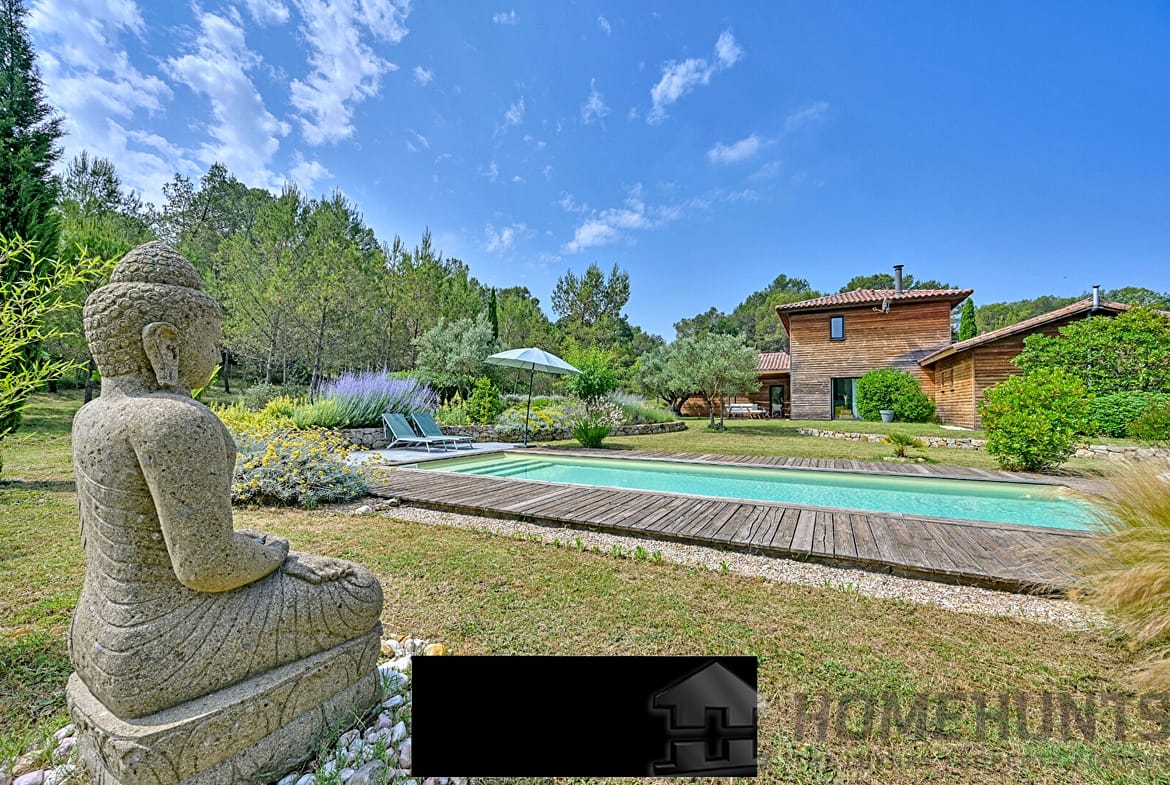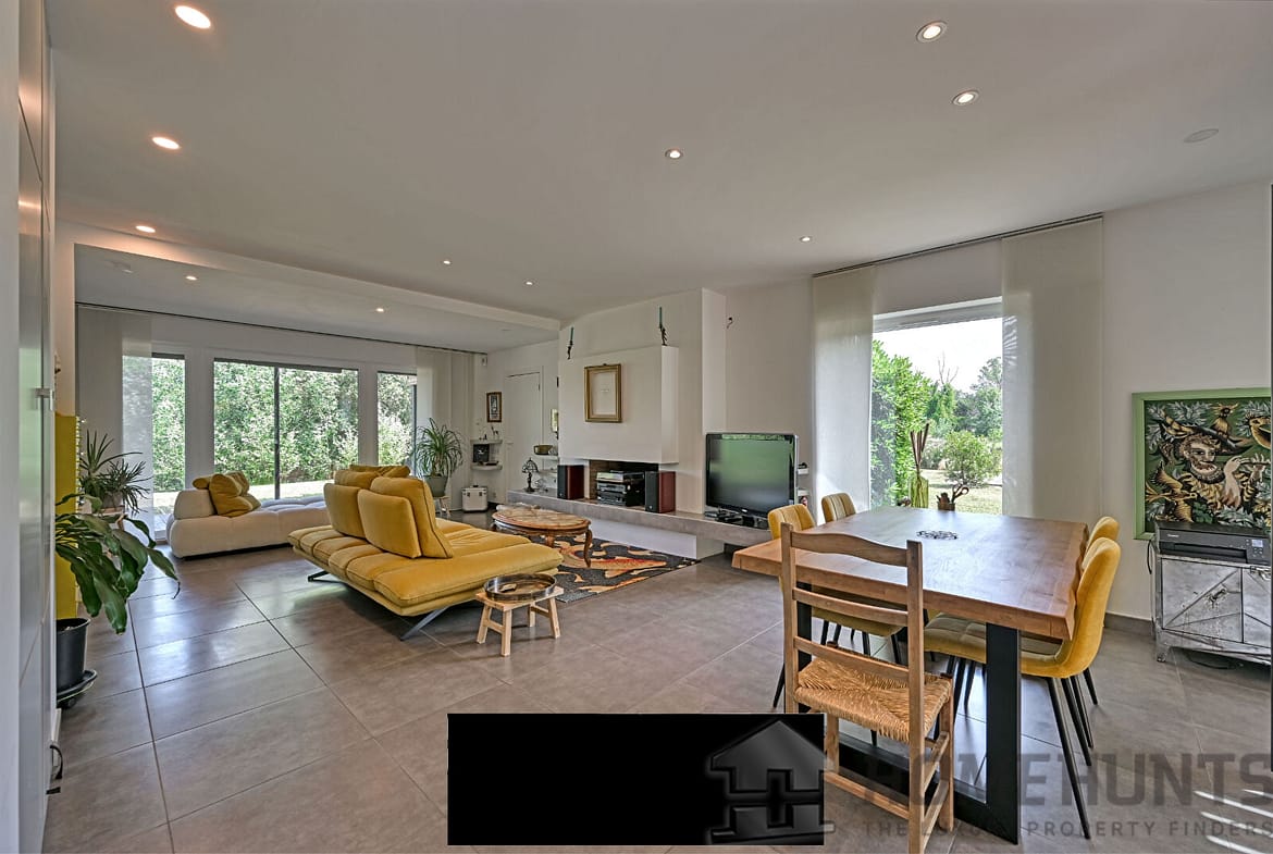 The house has 204 m2 on two levels on a plot of 5,400 m2 buildable. As soon as you arrive, you are charmed by this place, which could not be more peaceful and welcoming. A beautiful landscaped access draws the entrance to the house clad in Douglas pine. We then glimpse this vast and magnificent landscaped garden with multiple Mediterranean species and at its heart the beautiful 10 m x 3.5 m salt-treated swimming pool allowing swimming in complete privacy.