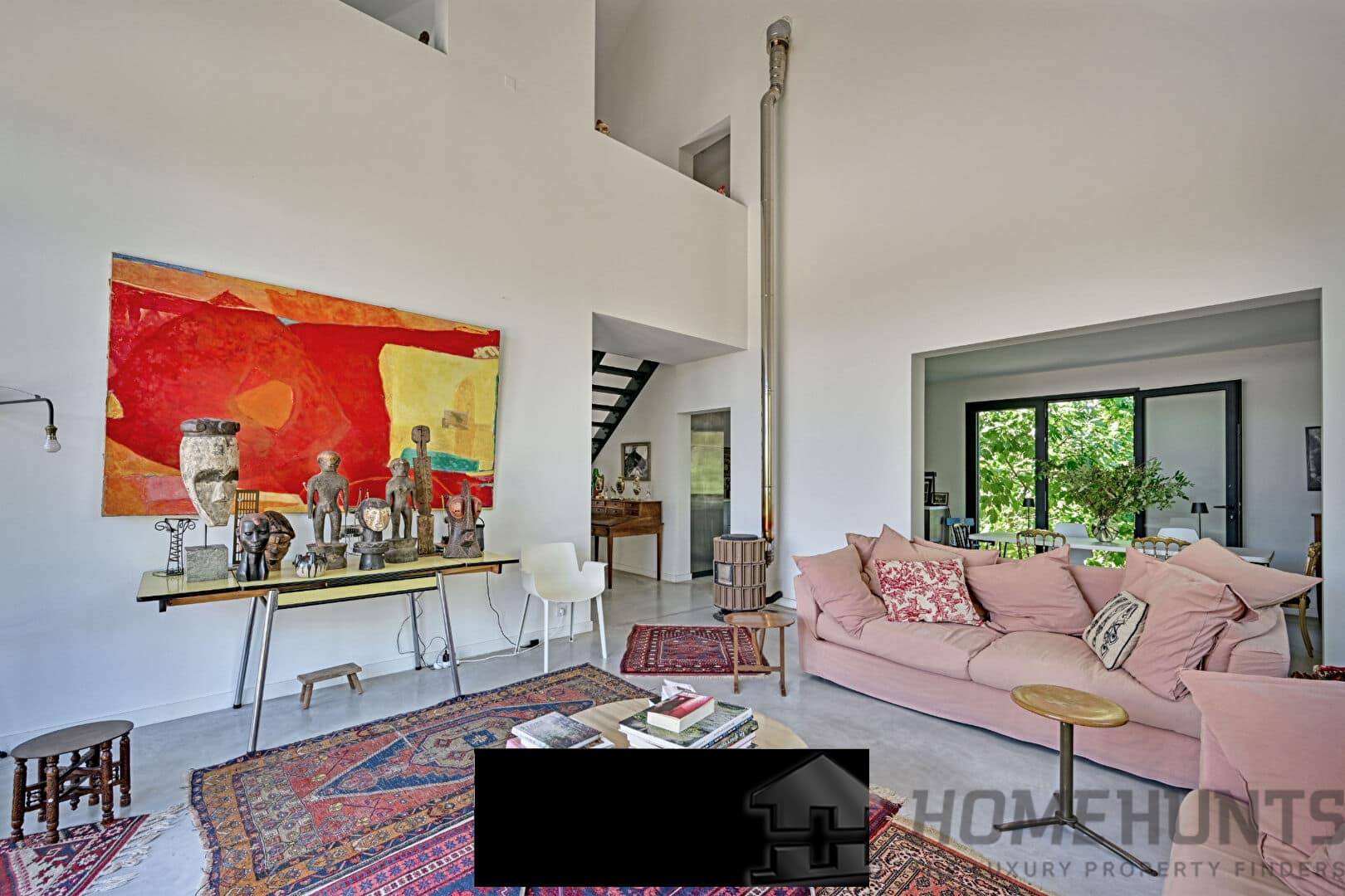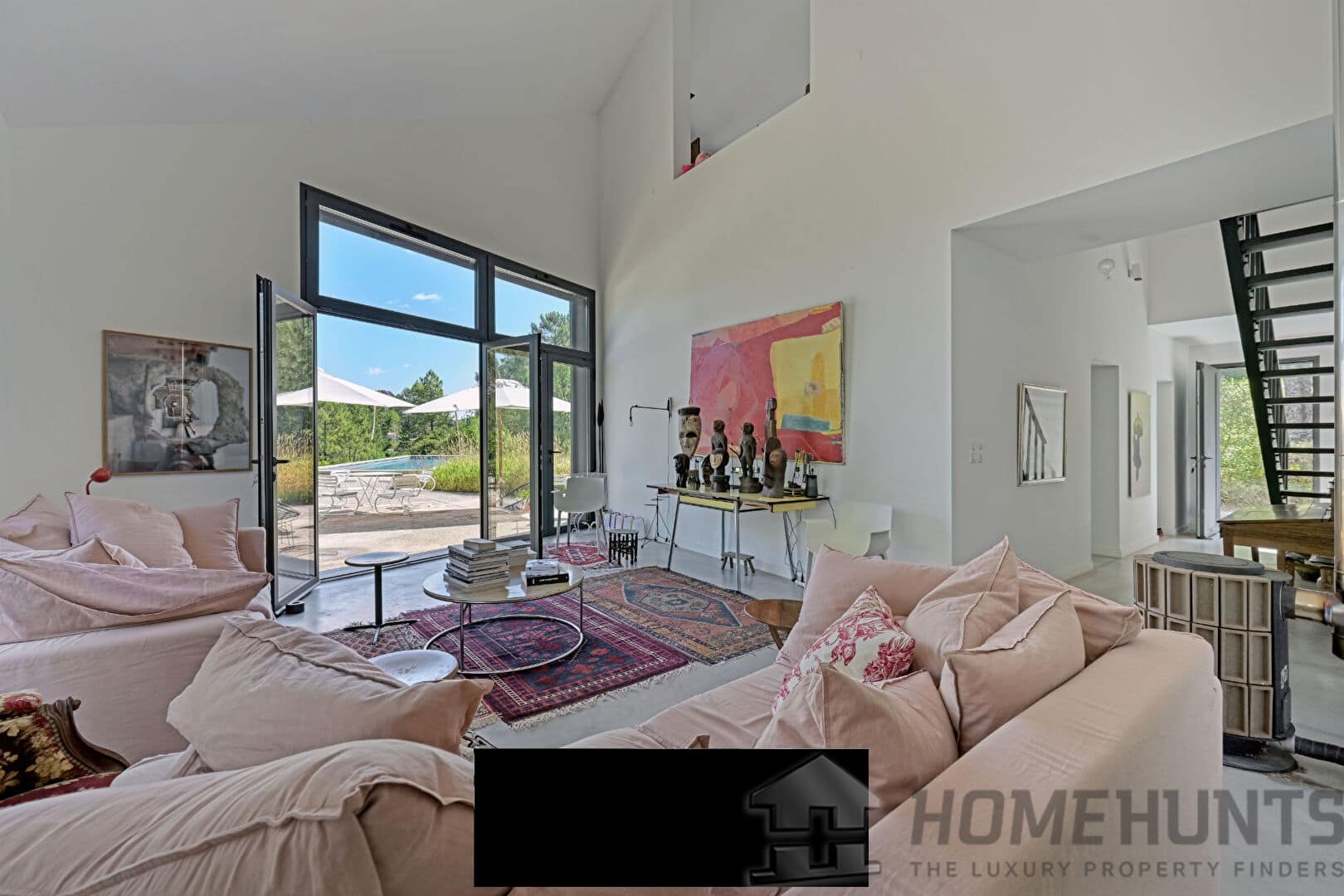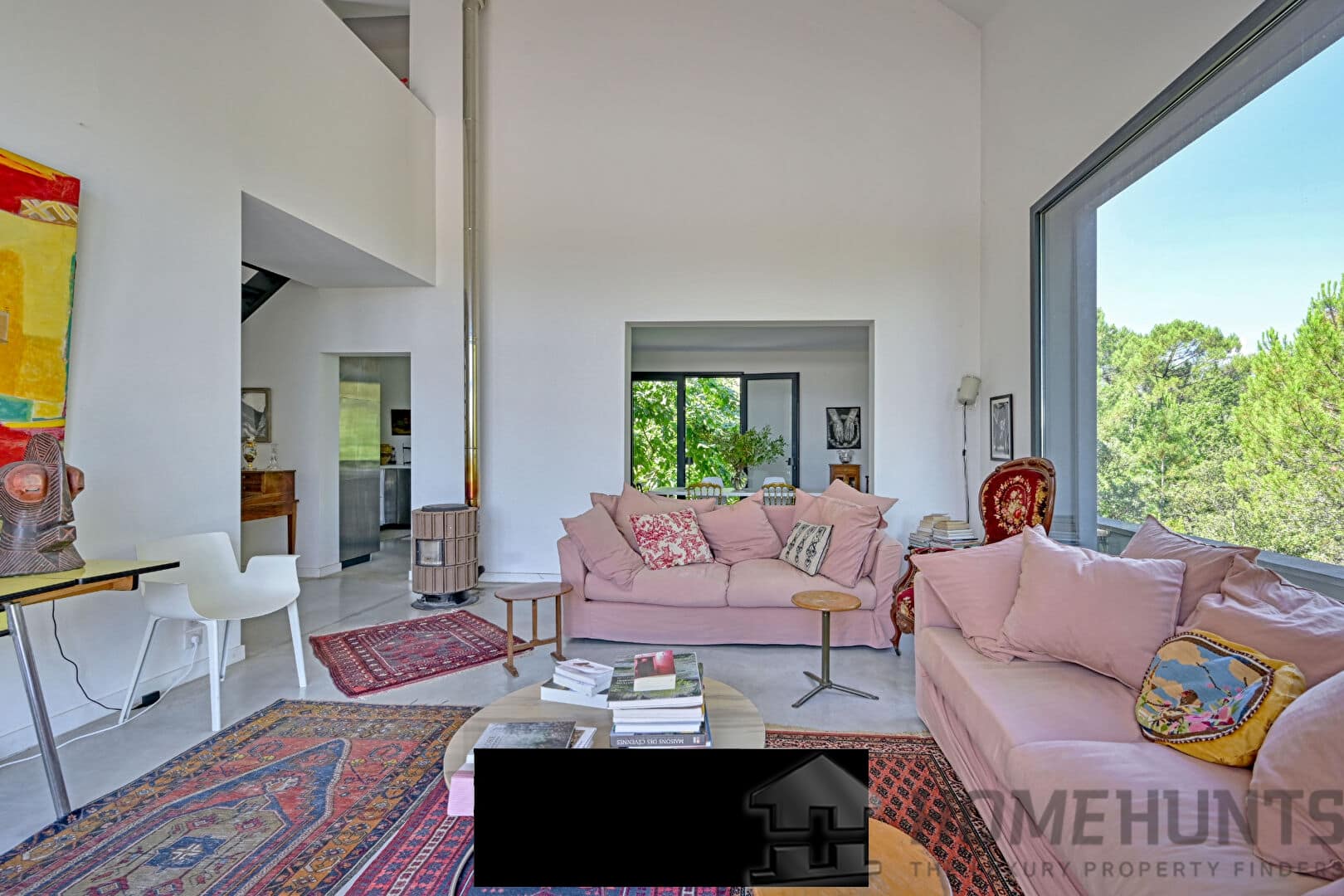 This unique property seduces with its minimalist architecture, its clean lines and the quality of its materials, in an exceptional natural setting at the gateway to the Cevennes. The spacious and light-flooded living room opens generously to the exterior thanks to large bay windows. Its impressive 8-meter ceiling height gives the whole a feeling of volume and exceptional grandeur. The polished concrete floors reinforce the contemporary aesthetic of the place while providing an elegant visual continuity between the spaces. The living area, both convivial and refined, benefits from a fluid layout, designed for both everyday use and for entertaining. A high-end wood-burning stove adds a warm and elegant touch to winter evenings. The contemporary stainless steel kitchen with a central island blends perfectly into this harmonious ensemble. The true heart of the room, it invites both meal preparation and sharing, in a friendly and elegant atmosphere.