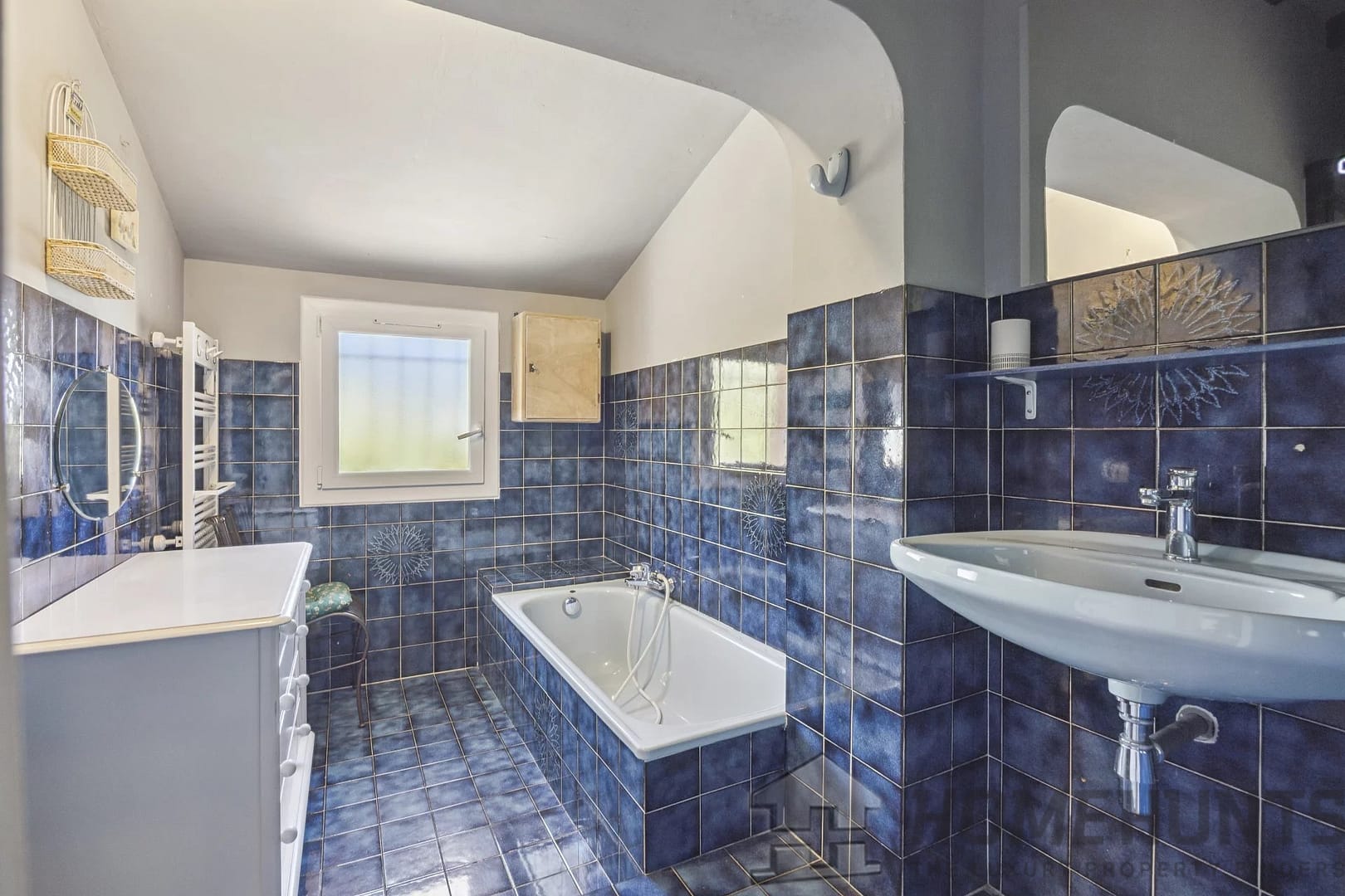 The ground floor comprises a living room with fireplace and very high ceilings, access to a vast covered outdoor terrace with summer kitchen, a dining room, a contemporary kitchen and a separate toilet.