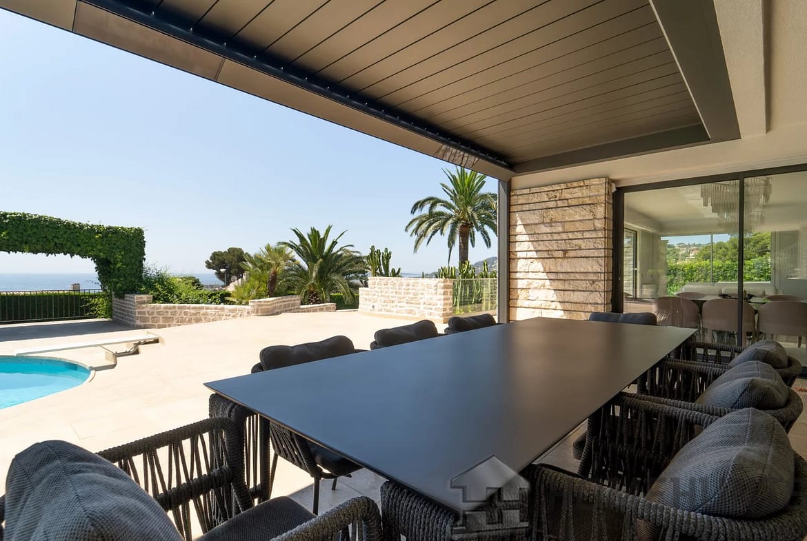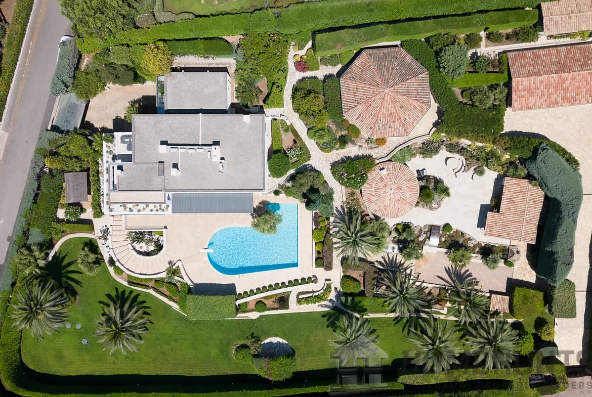 Set on a flat plot of 4,369 m2, the property boasts a stunning panoramic sea view of the Mediterranean. A large pool, perfectly integrated into the surroundings, offers a space for relaxation and enjoyment of this idyllic setting.