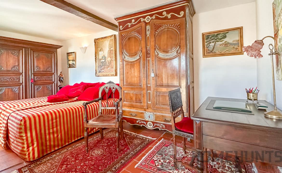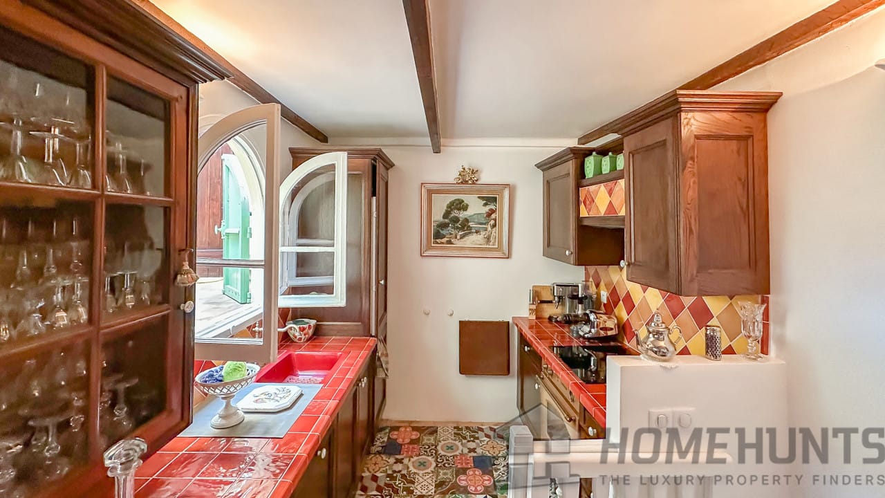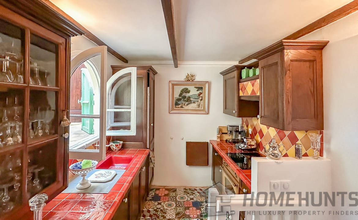 – second floor: a fully equipped kitchen opening onto a dining room with a built-in dresser, a living room opening onto a beautiful flowered terrace (very rare in the historic center), a closed pergola with a fully equipped summer kitchen