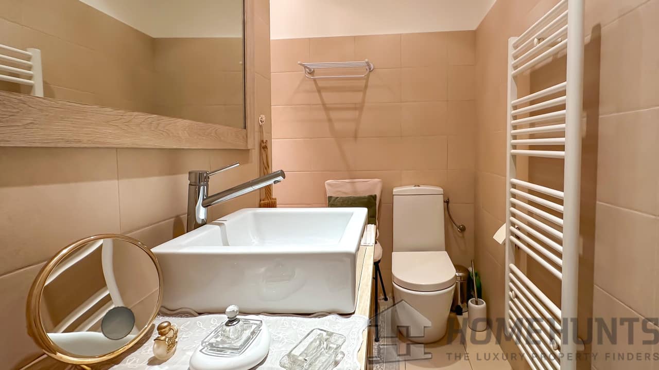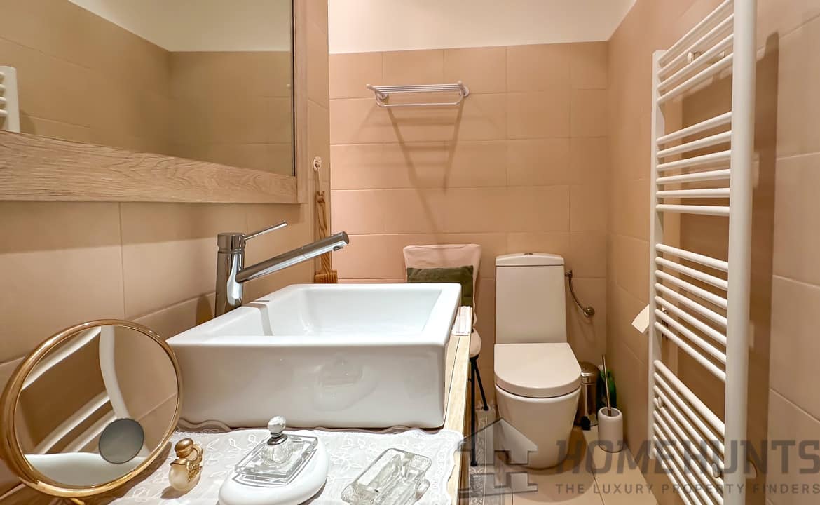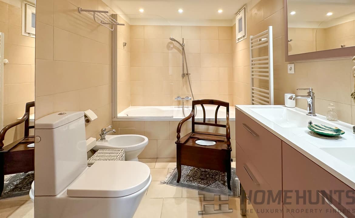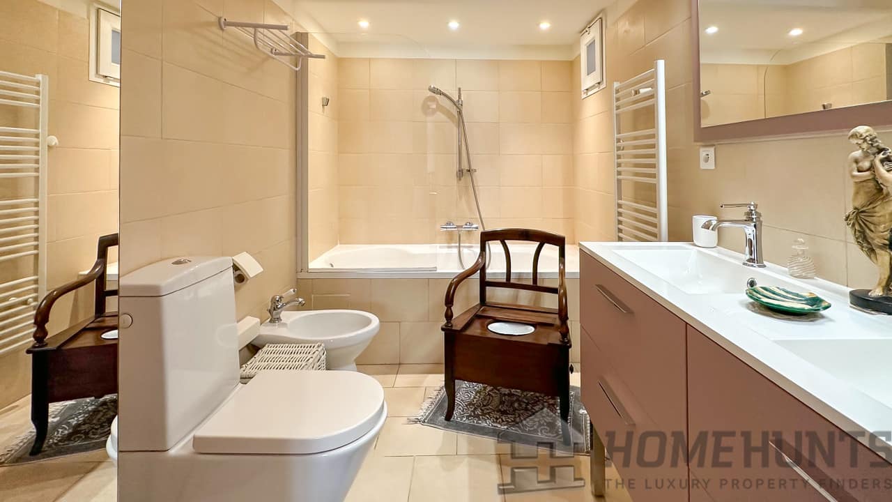 – first floor: two bedrooms, two bathrooms equipped with a vanity unit with mirror, lights, towel radiator and toilet, a dressing room, a laundry room, three storage closets