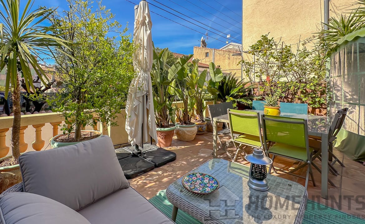 A charming town house located in the heart of the historical center of the old town of Antibes with three bedrooms, two bathrooms, and a large pleasant terrace with a summer kitchen.