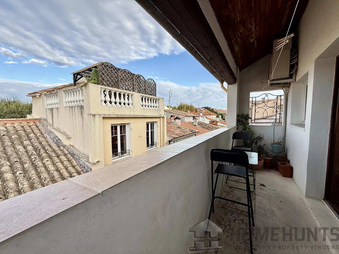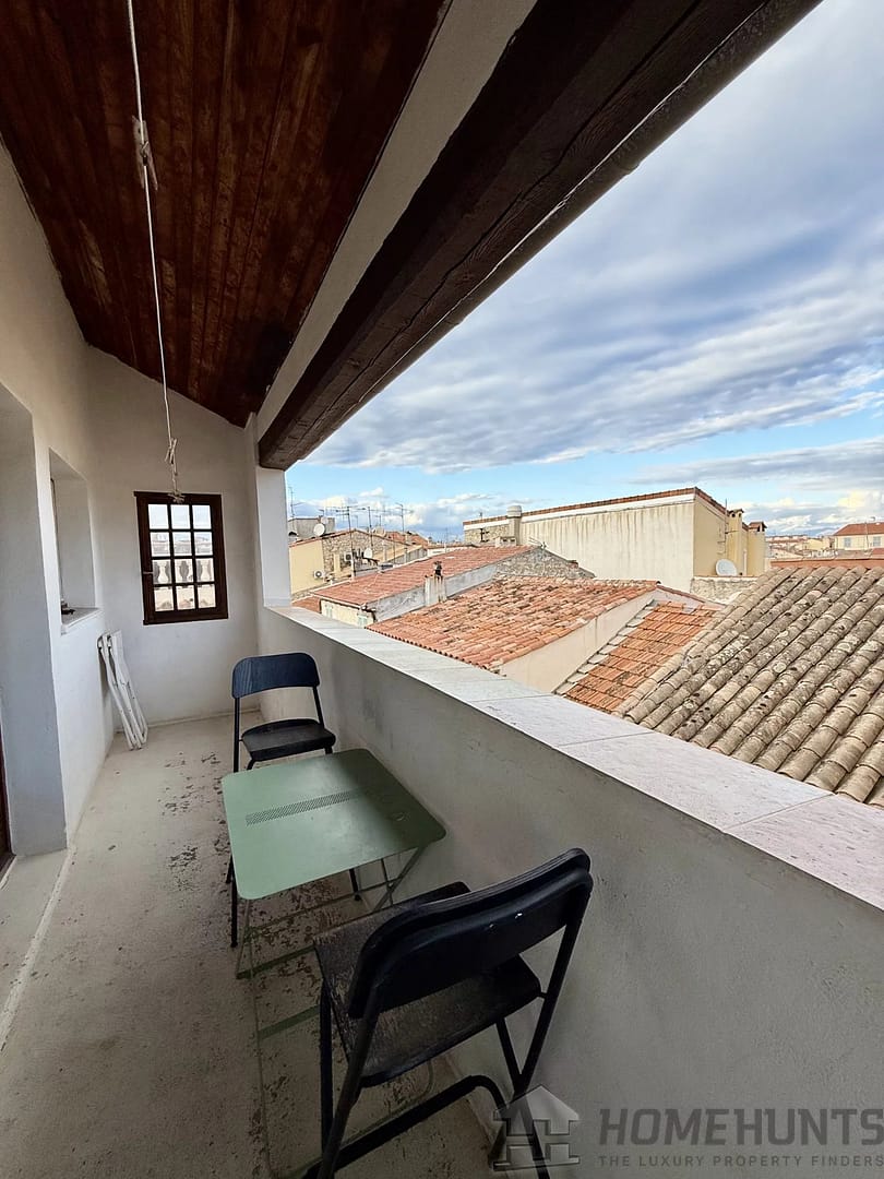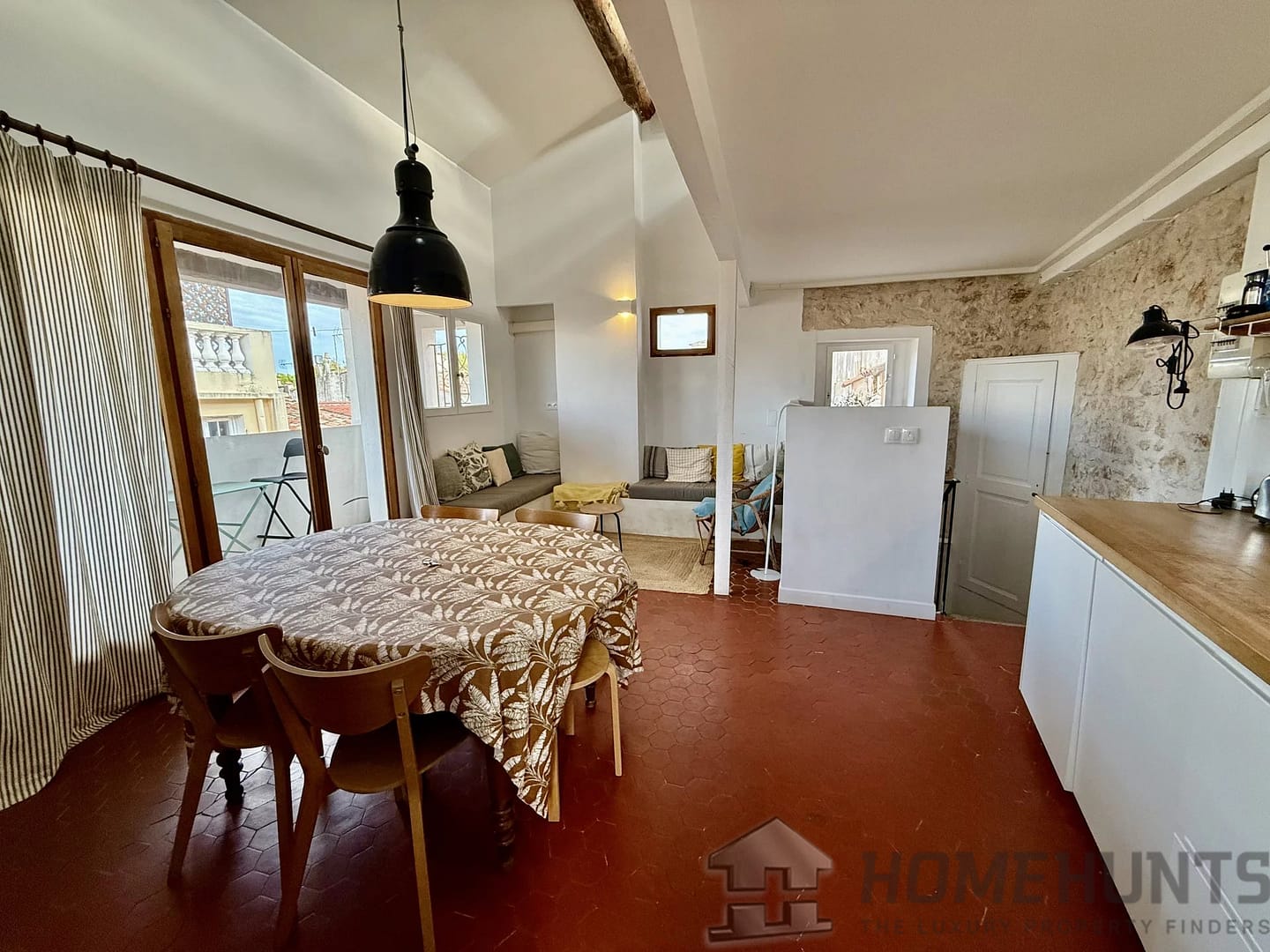 The terrace enjoys beautiful views over the rooftops of Antibes.