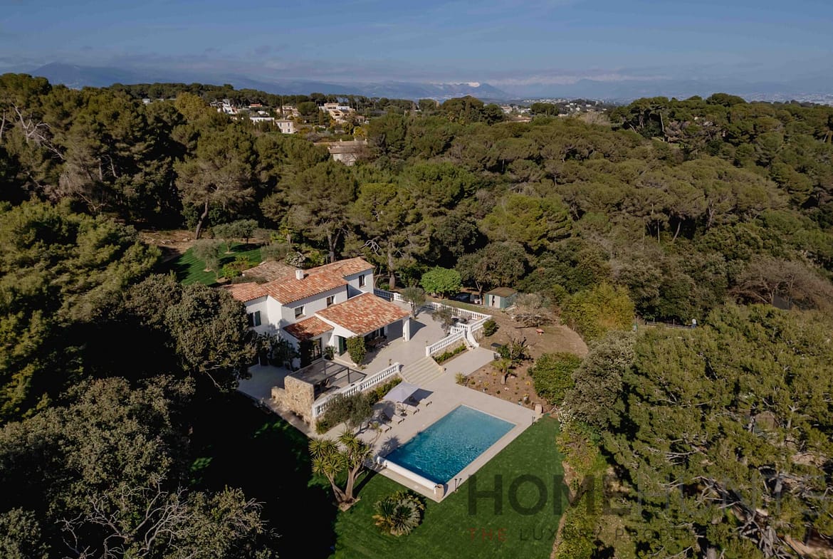 Beautifully tucked away villa which has been completely renovated throughout, sitting in a sought-after and peaceful location close to Antibes. with views down to the sea.